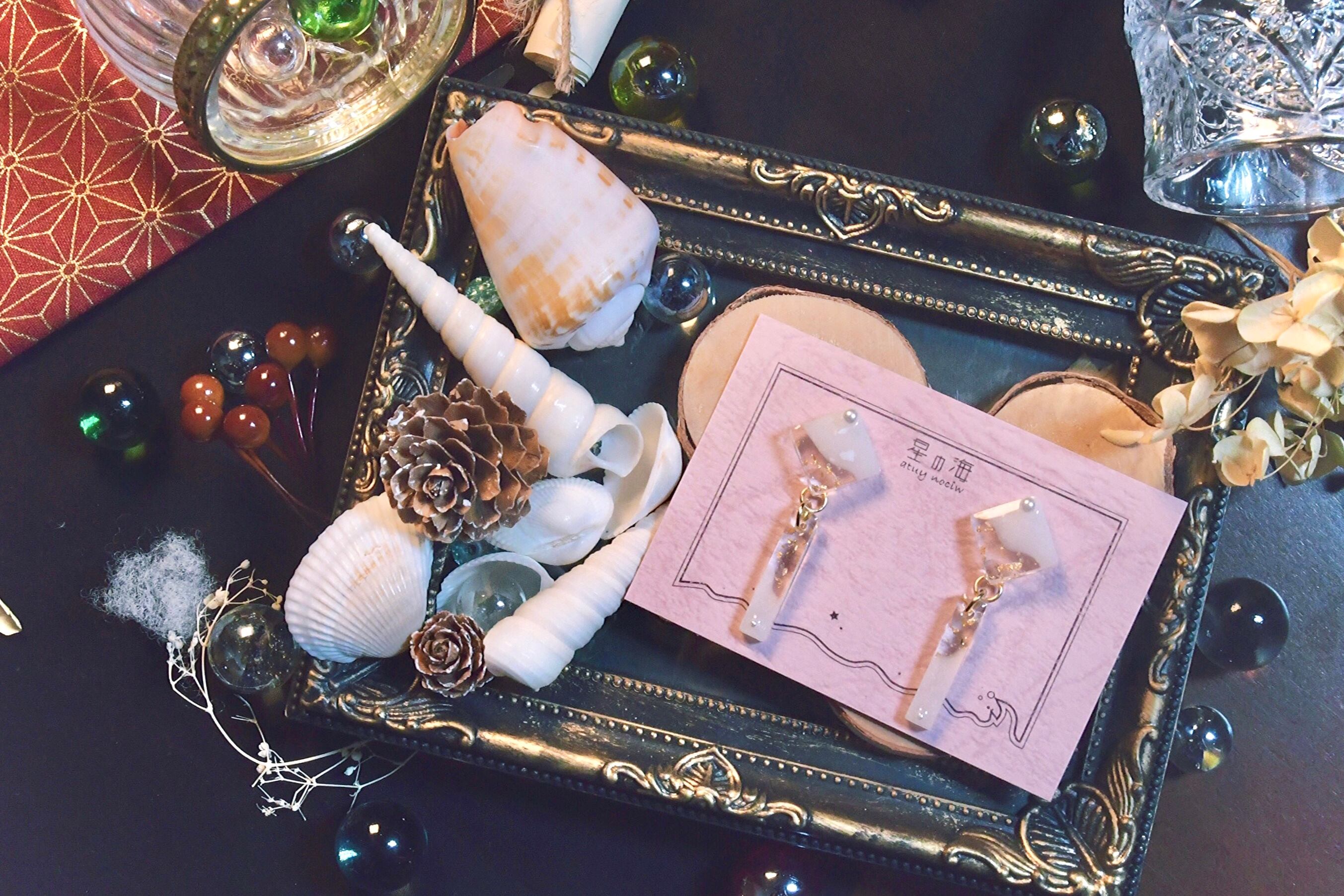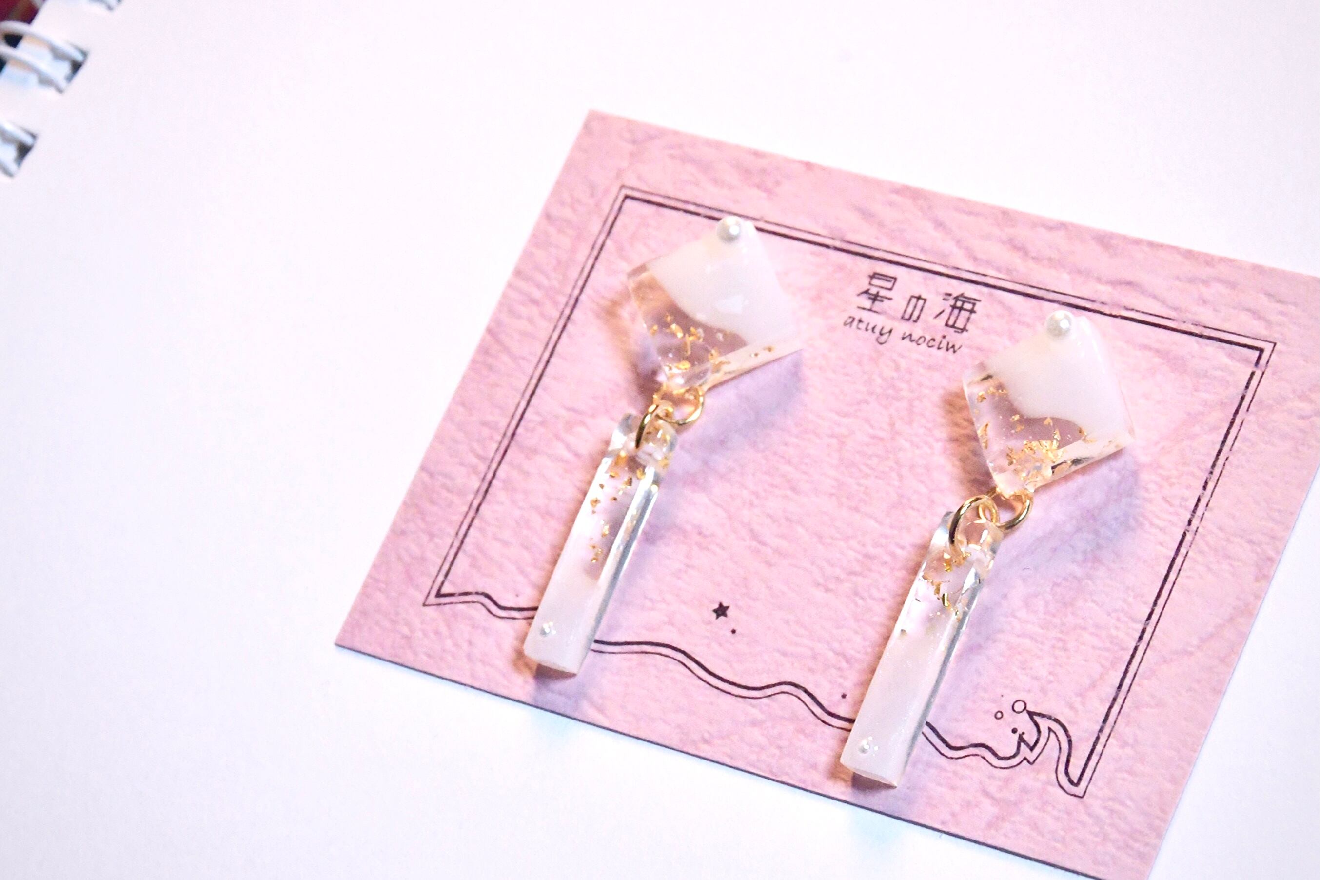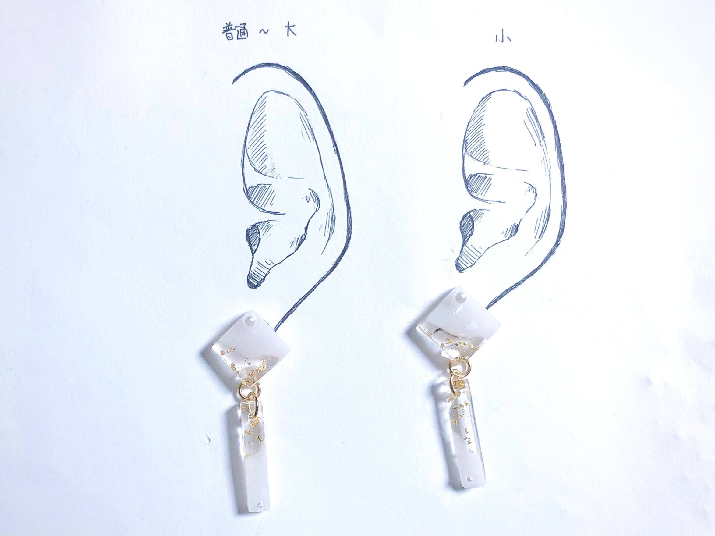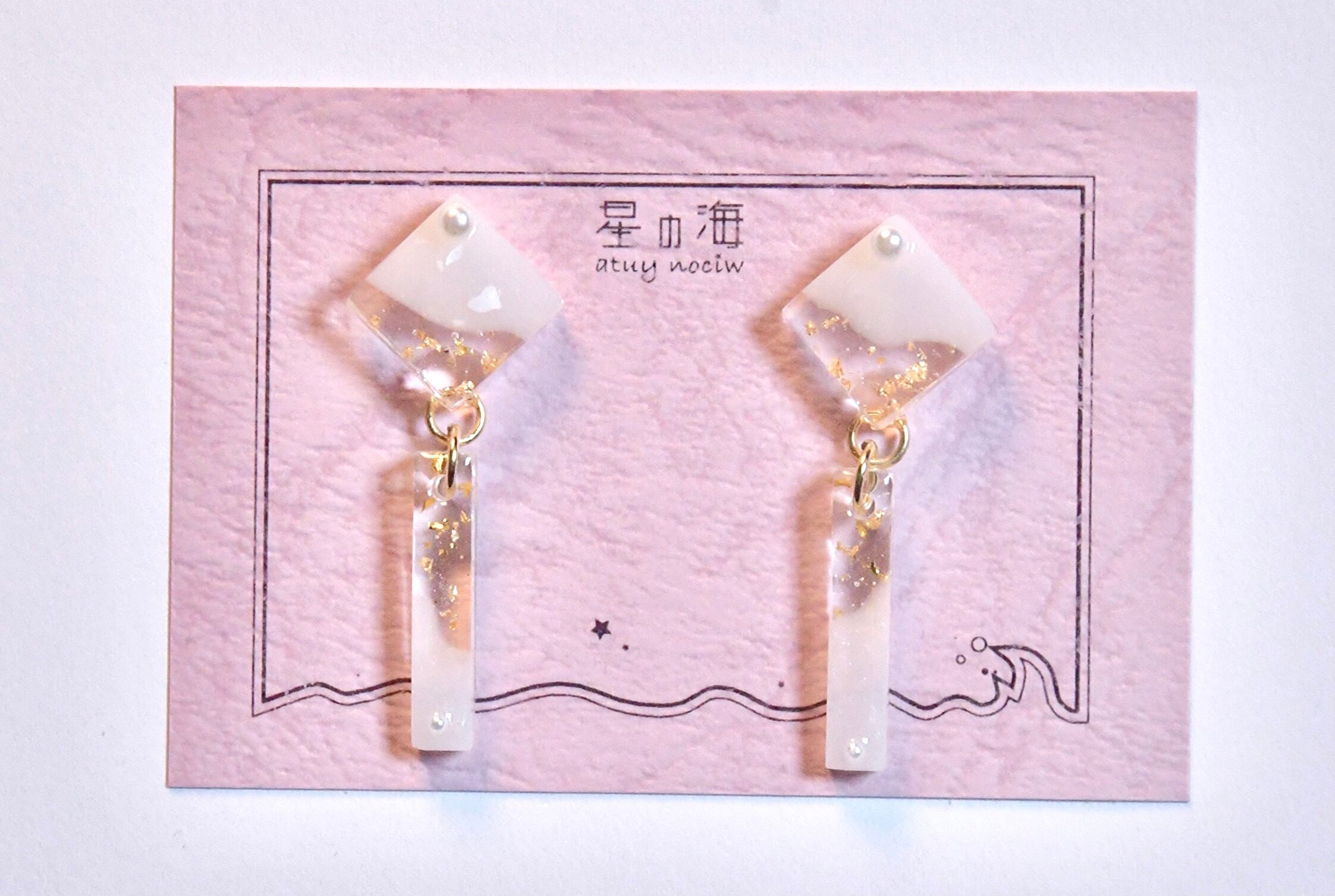 ハンドメイド アクセサリー ピアス イヤリング クリア 白 パール ラメ キラキラ 金箔 ゴールド 金 オーロラ きれいめカジュアル きれいめコーデ ファッション 大人っぽい 韓国 中国 コーデ シェル 夏 爽やか 涼しげ 夏服 綺麗 揺れる ゆれる 大ぶり ゴツめ 存在感 かっこいい キリッとした