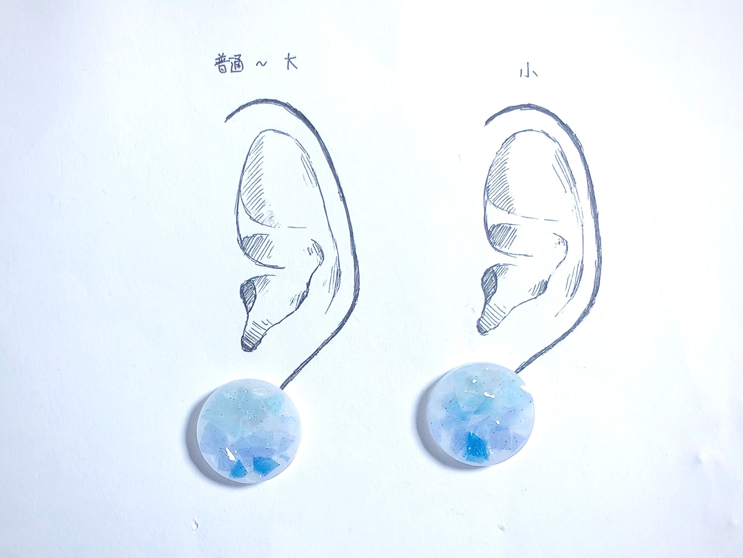 大ぶりなので耳の裏側から見える部分も少し透けて青が見えるという素敵仕様です…♡