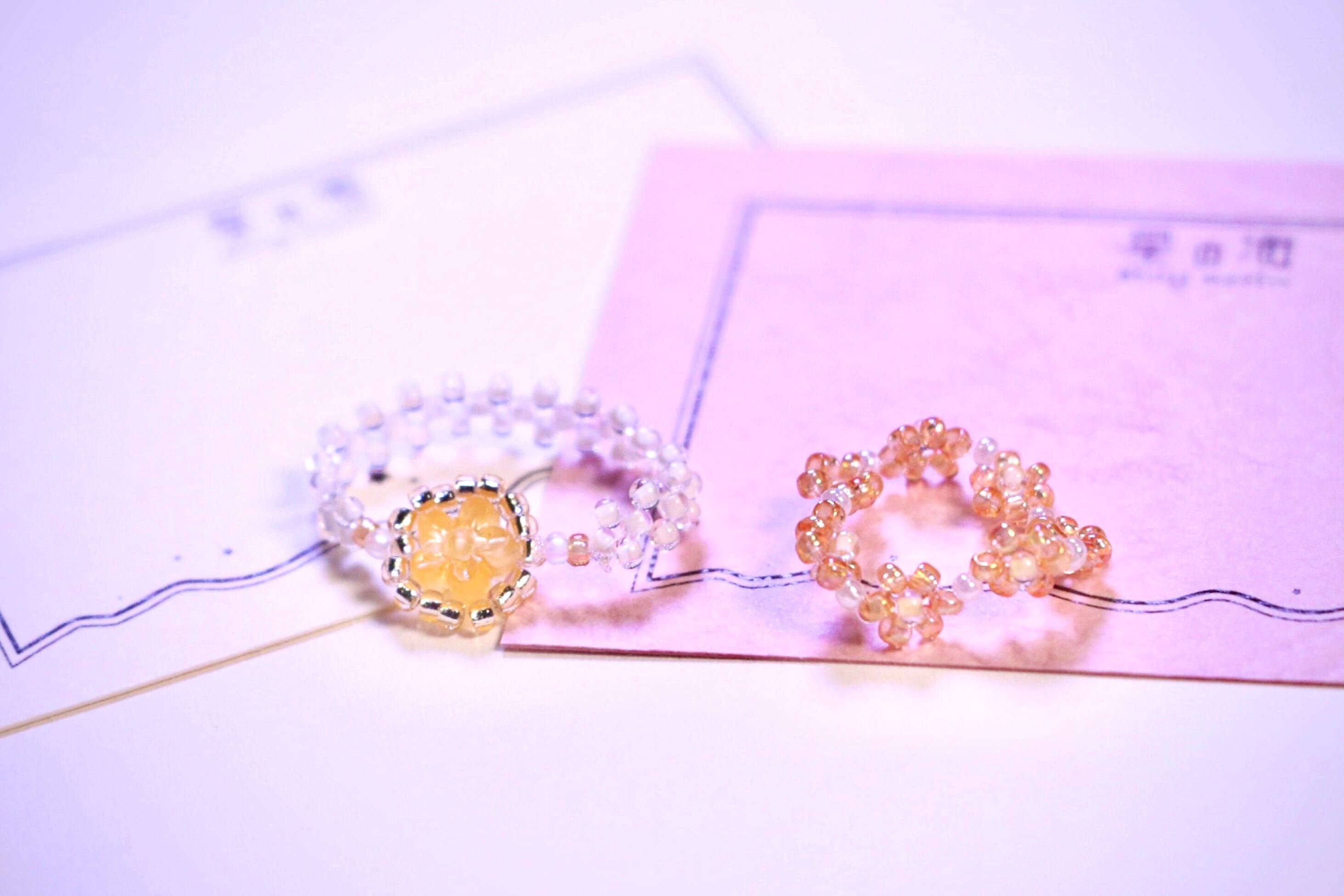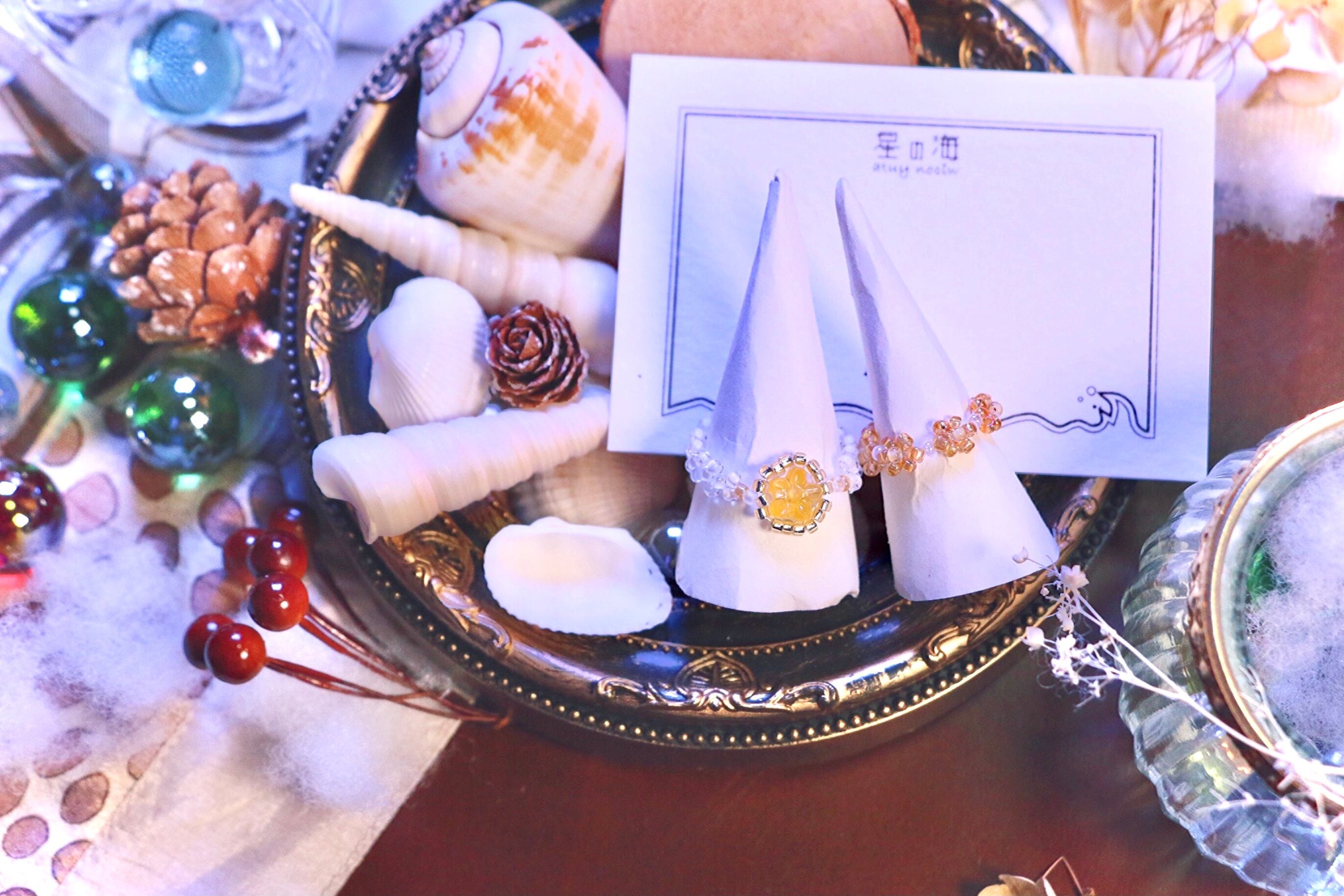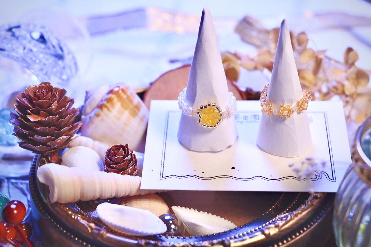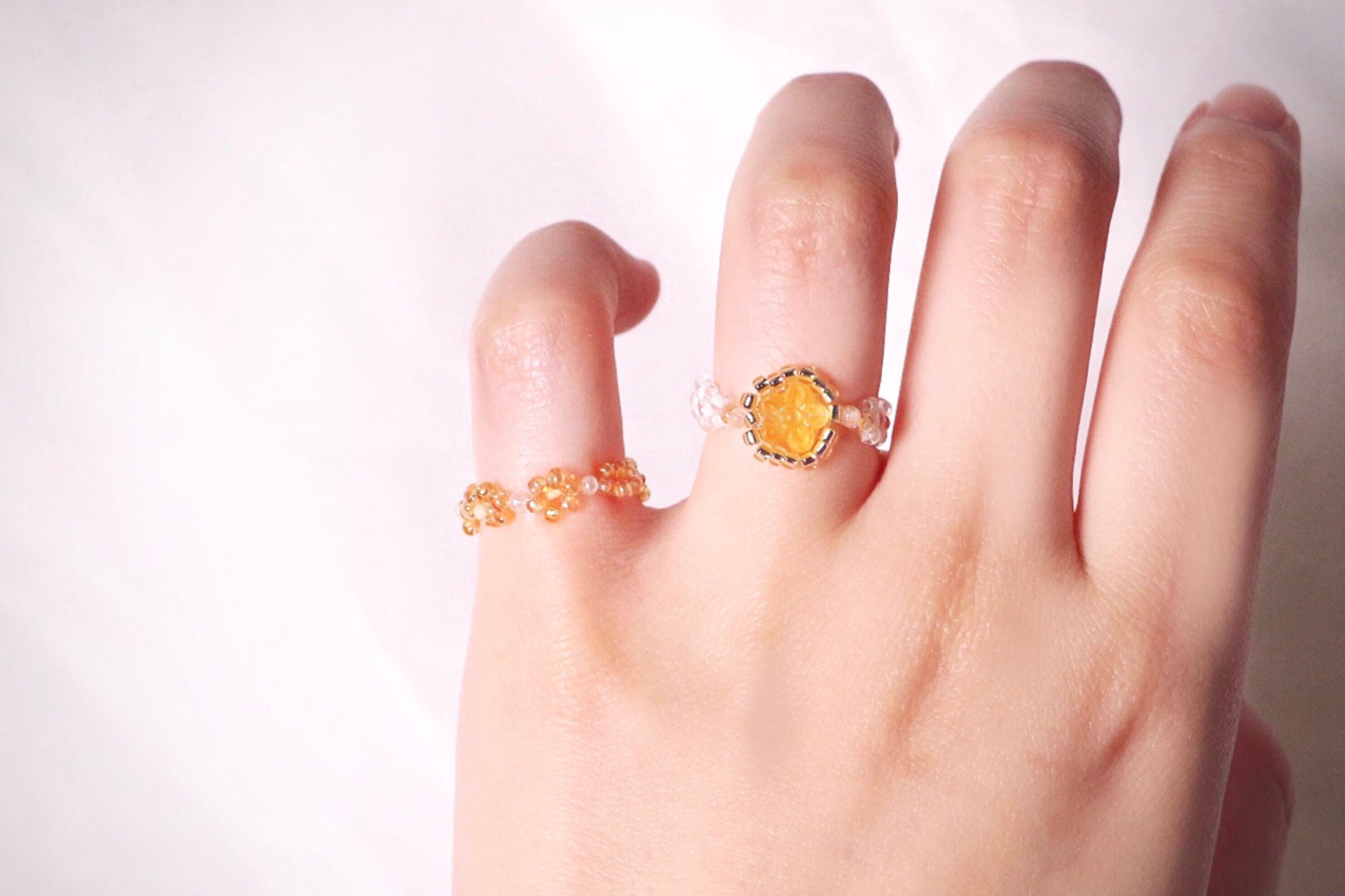 ハンドメイド アクセサリー リング 指輪 ビーズリング フラワーリング ビーズ 大人っぽい お花 韓国風 トレンド アイテム ワンポイント ゴールド かわいい マット セット プレゼント ギフト レトロ コーデ ファッション ピンキーリング オーロラ ホワイトコーデ 白 シャーベットカラー マット クリア レトロ 大きめ オレンジ 黄色 イエロー レトロポップ ポップ デザイン