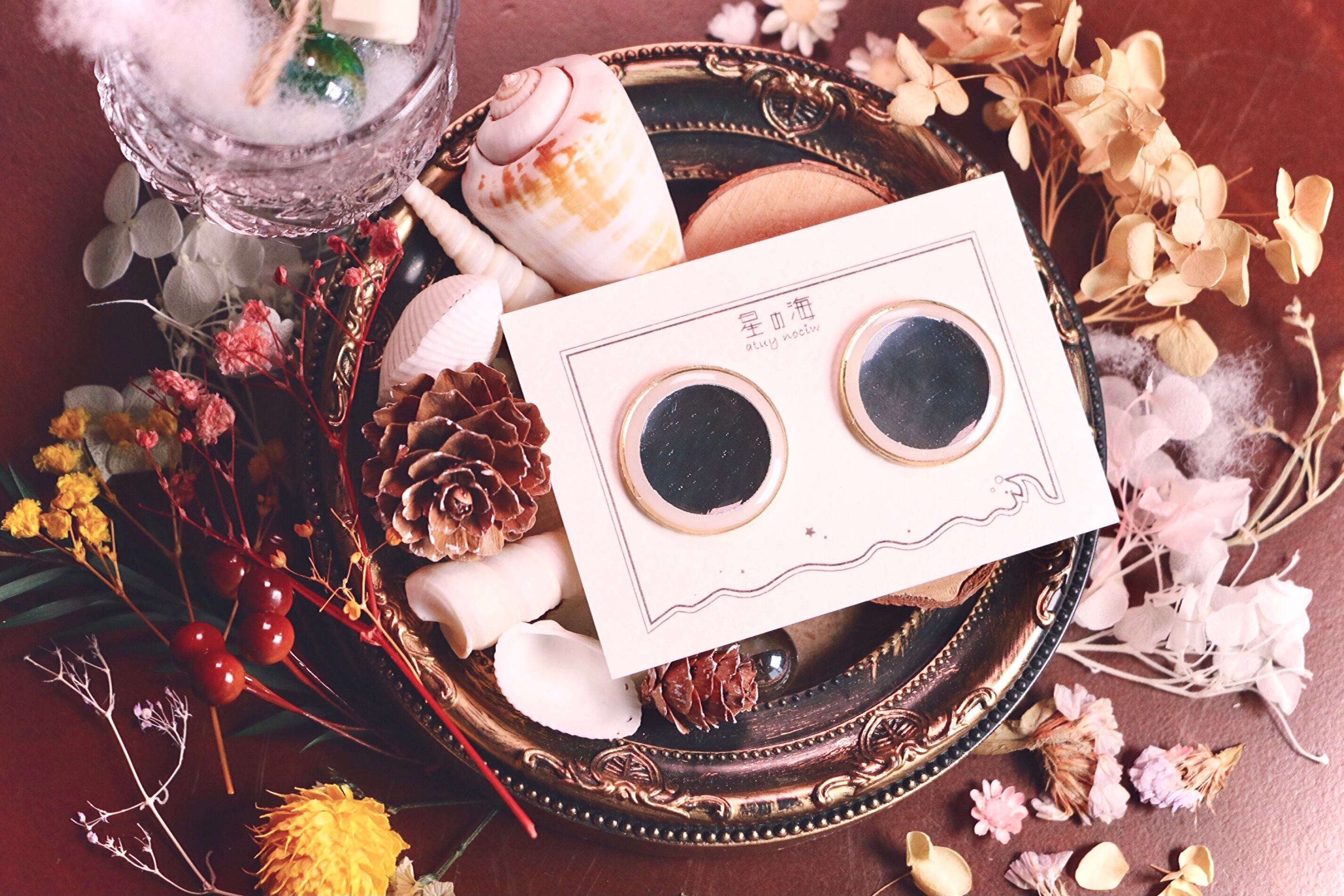 映し出すもの (鏡 大ぶり イヤリング ピアス ノンホールピアス)