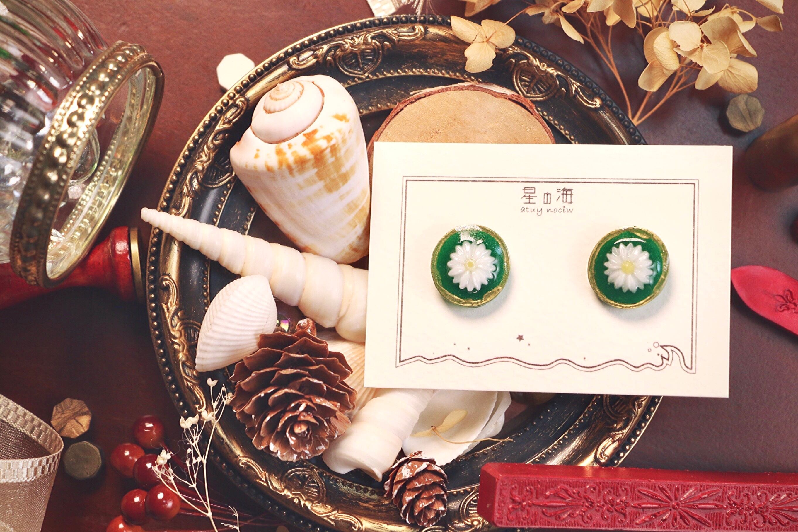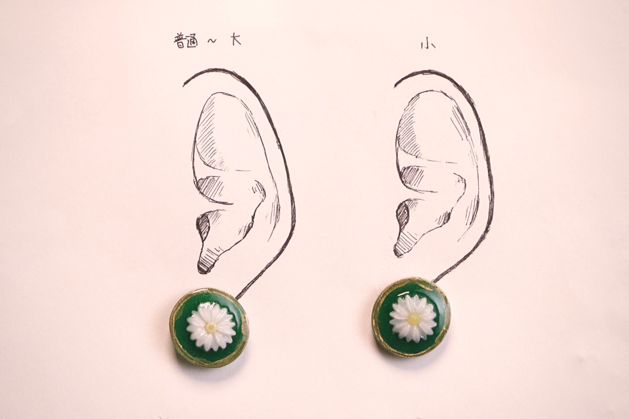 花ボタン 緑ver. (レトロ マーガレット ピアス イヤリング ノンホールピアス)