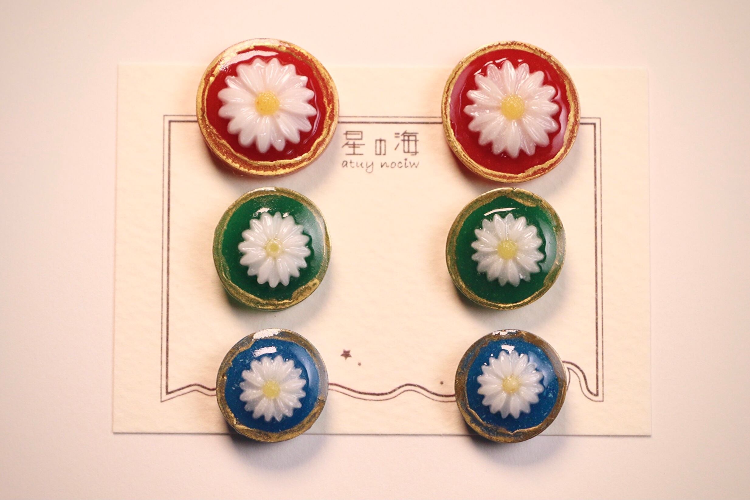 花ボタン 赤ver. (レトロ マーガレット ピアス イヤリング ノンホールピアス)