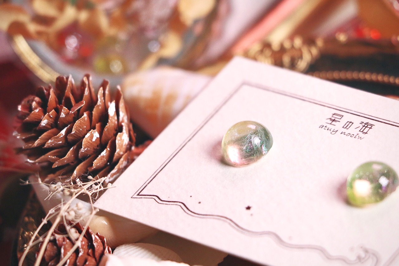 ハンドメイド アクセサリー ピアス イヤリング ノンホールピアス しゃぼん玉 シャボン玉 きれい かわいい レトロ 昭和レトロ 平成レトロ 駄菓子 ビー玉 おはじき オーロラ キラキラ プレゼント ギフト ファッション おしゃれ 三原色 透明感 クリア 韓国 秋