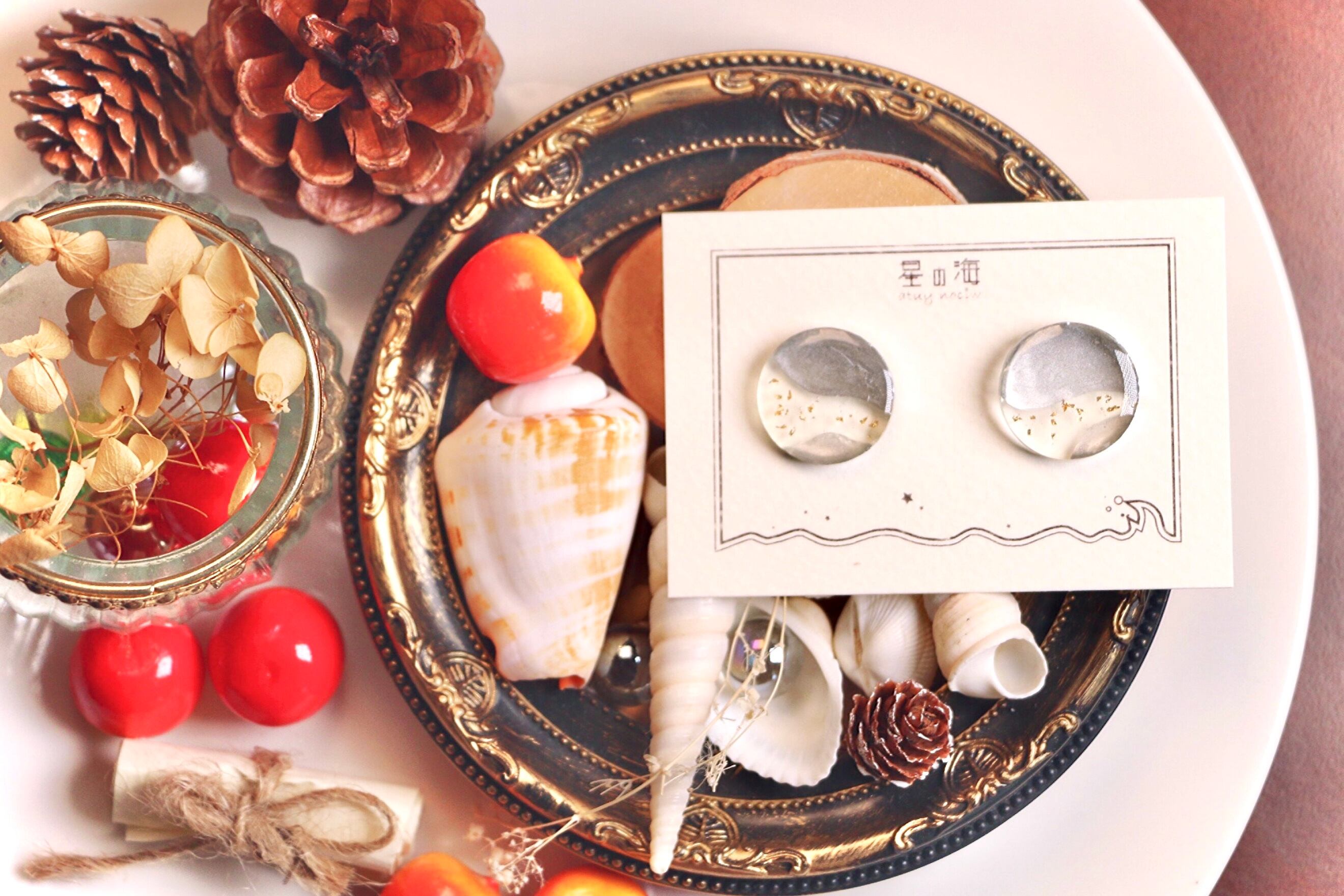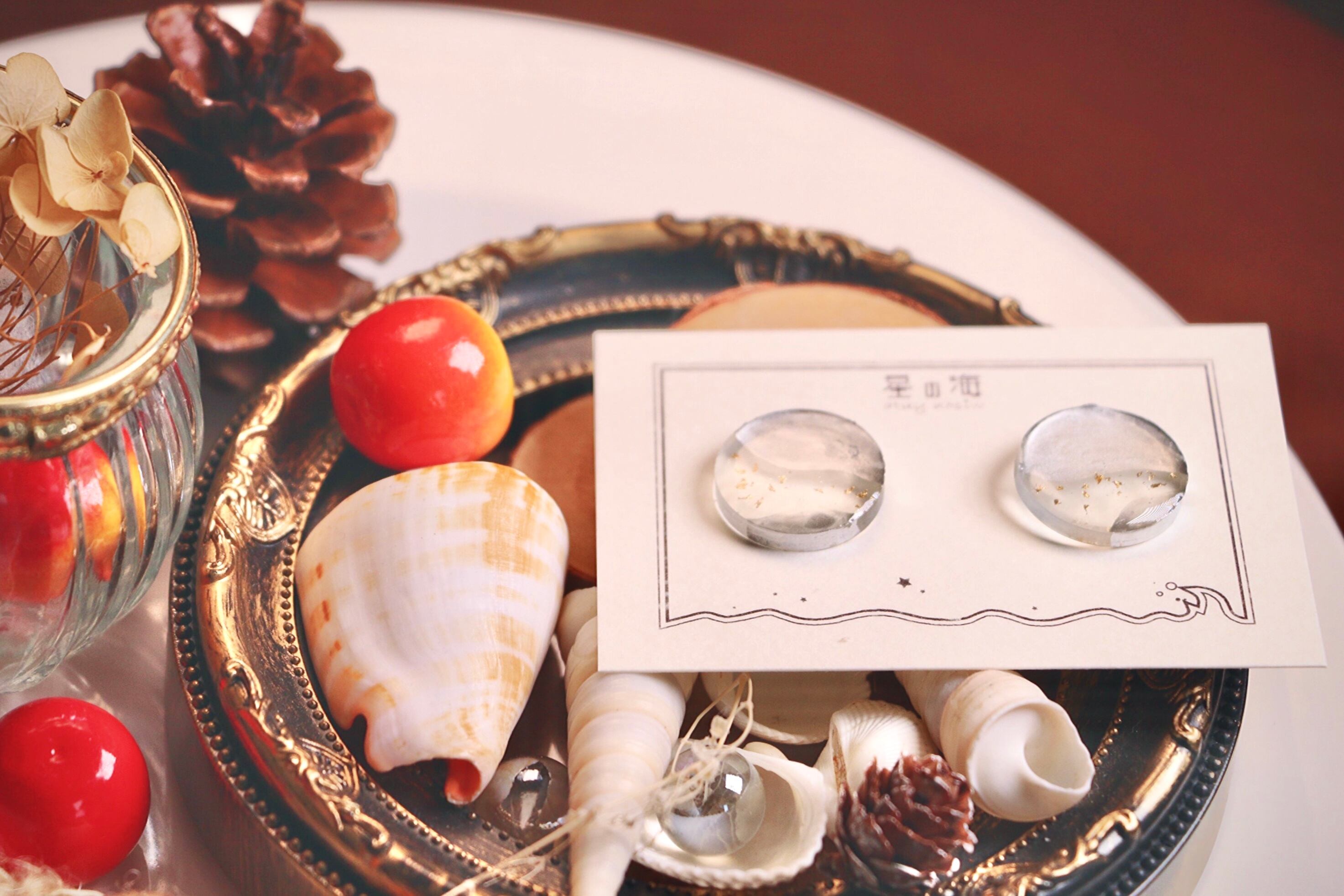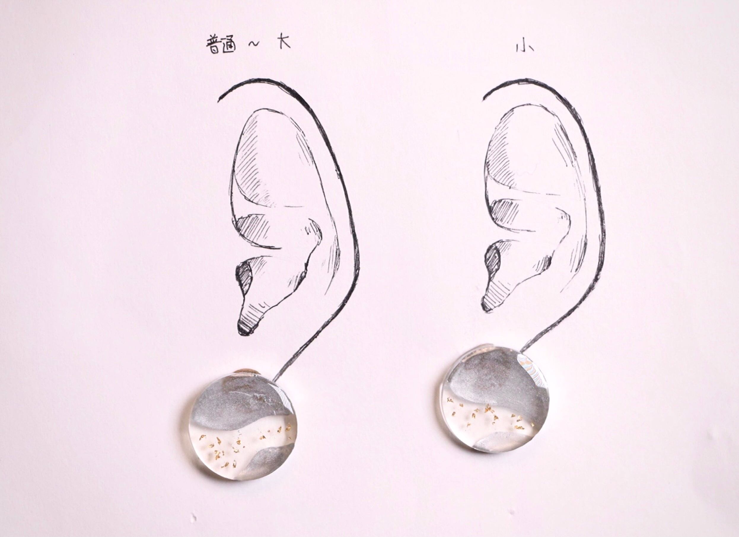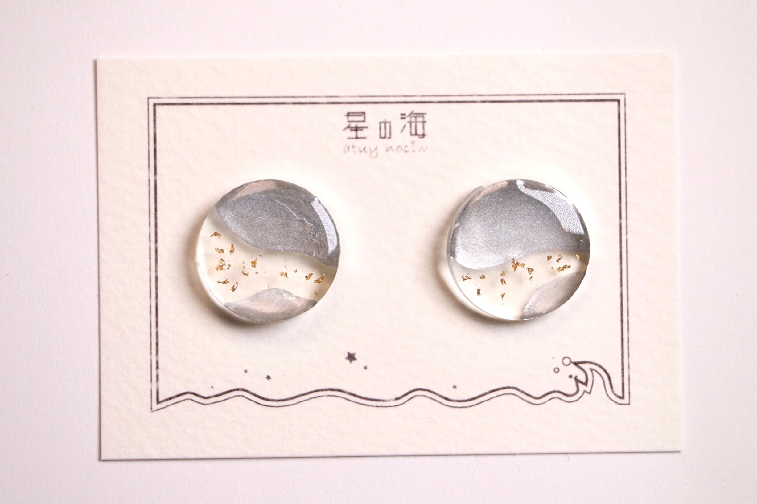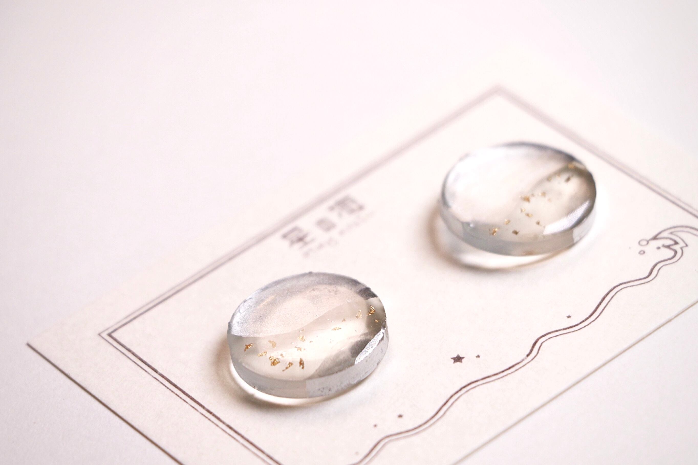 ハンドメイド アクセサリー ピアス イヤリング ノンホールピアス 透明 クリア 感 かわいい 可愛い きれい 綺麗 大人っぽい コーディネート ファッション 韓国風 キラキラ 氷 ネイル ちゅるん つやつや うるうる レトロ おしゃれ インスタ 函館 大ぶり 丸 ◯ シルバー 金箔 手描き