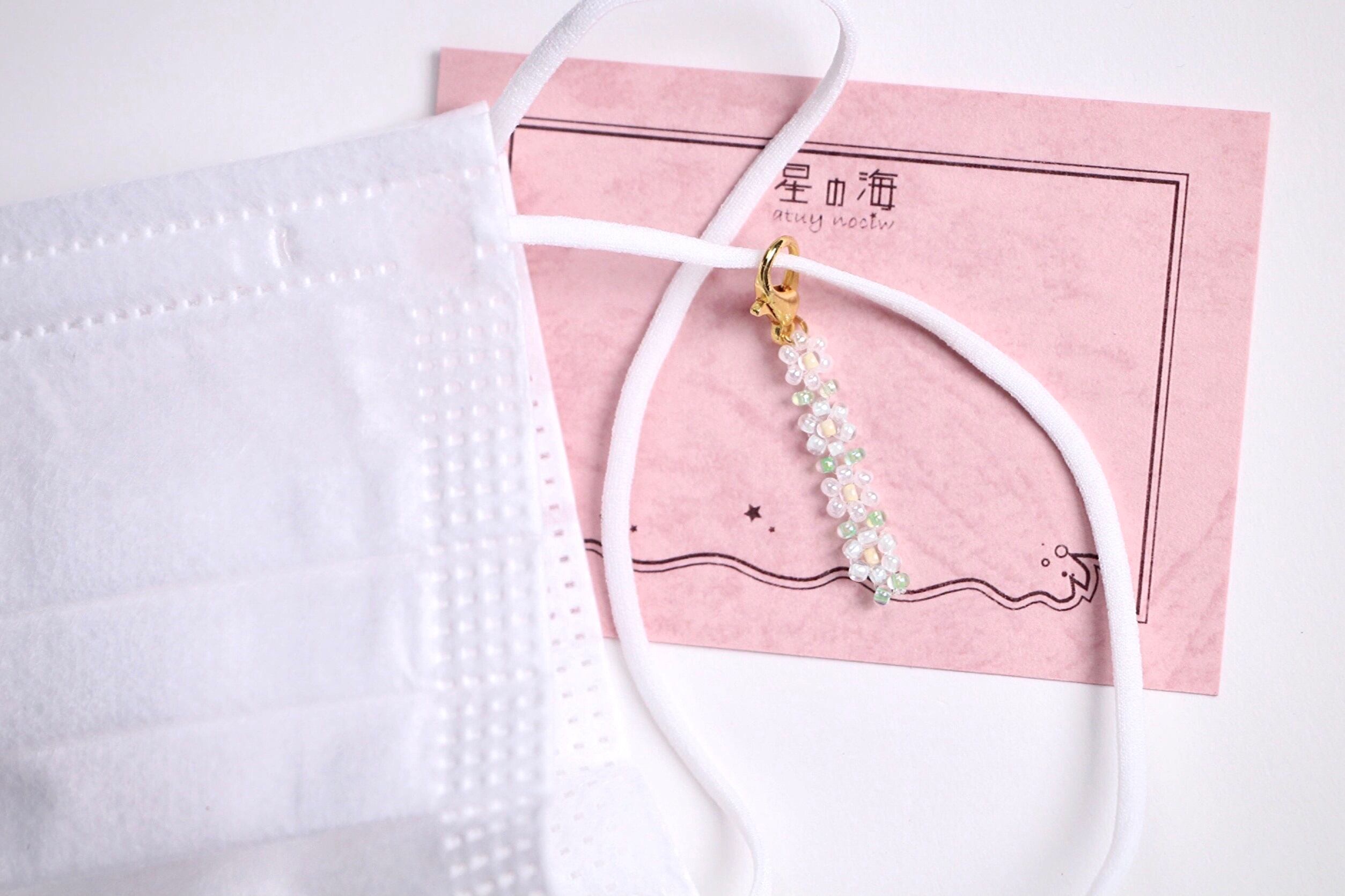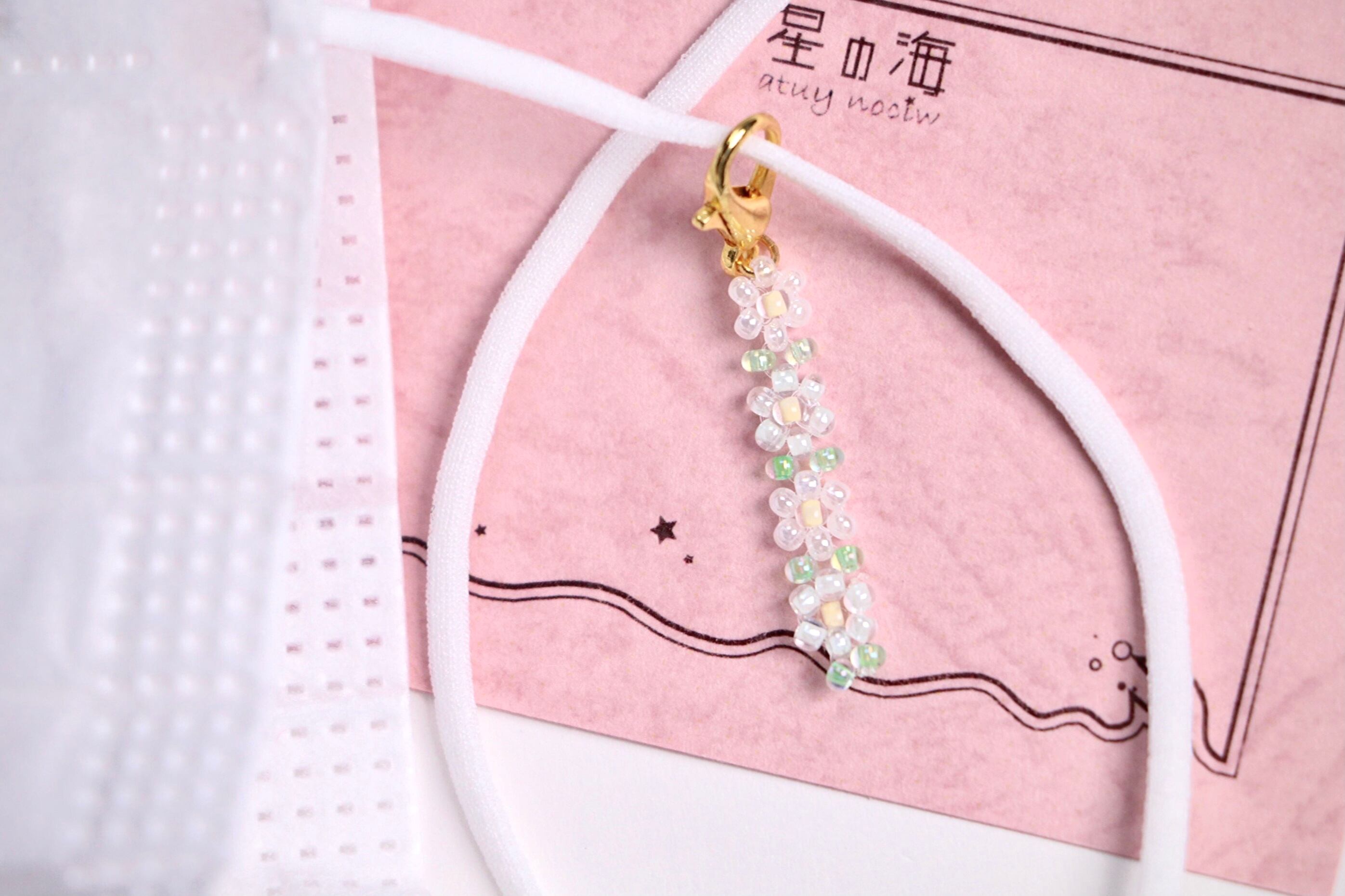 ハンドメイド アクセサリー マスク メガネ チャーム フラワー お花 かわいい ビーズ キラキラ ミニ 小さめ きれい ゴールド 安い 緑 黄色 ストラップ ゆらゆら おしゃれ ファッション コーディネート バー 長方形 シンプル 白 パステルカラー シャーベットカラー
