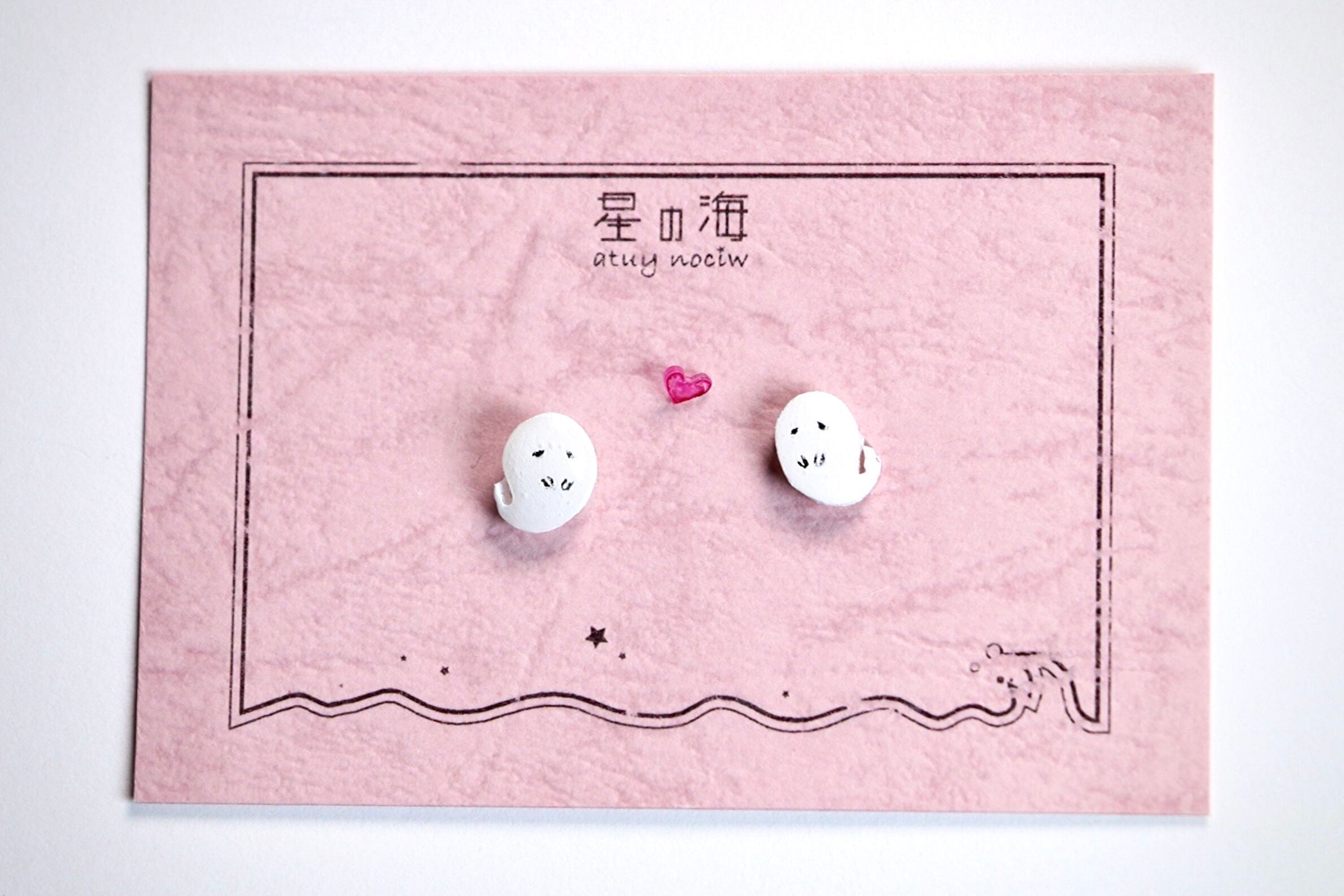 ハンドメイド レジン ピアス ノンホールピアス プラ板 かわいい ハロウィン 秋 ハロウィーン コスプレ 手描き 軽い 樹脂ピアス ゆるい ゆるキャラ 困り顔 おばけ ゴースト コーディネート ミニ 小さい 小さめ 華奢 ぷっくり 白 秋服 バッグチャーム ブローチ
