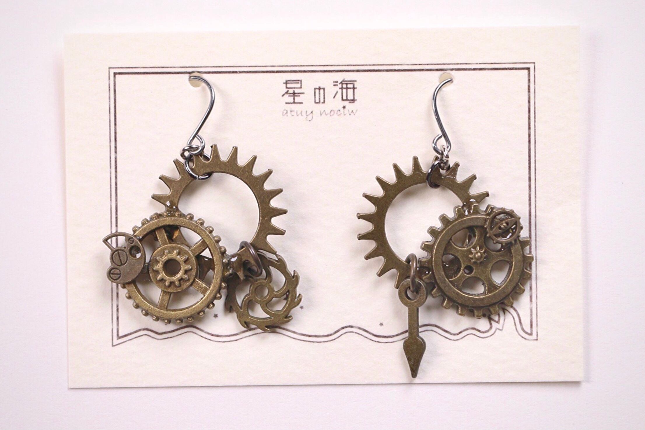 廻 (歯車 スチームパンク ピアス イヤリング)