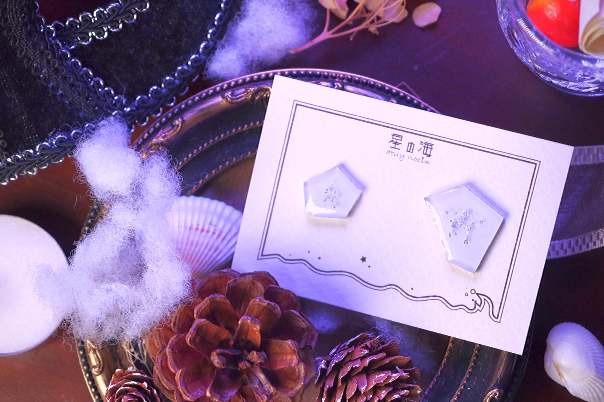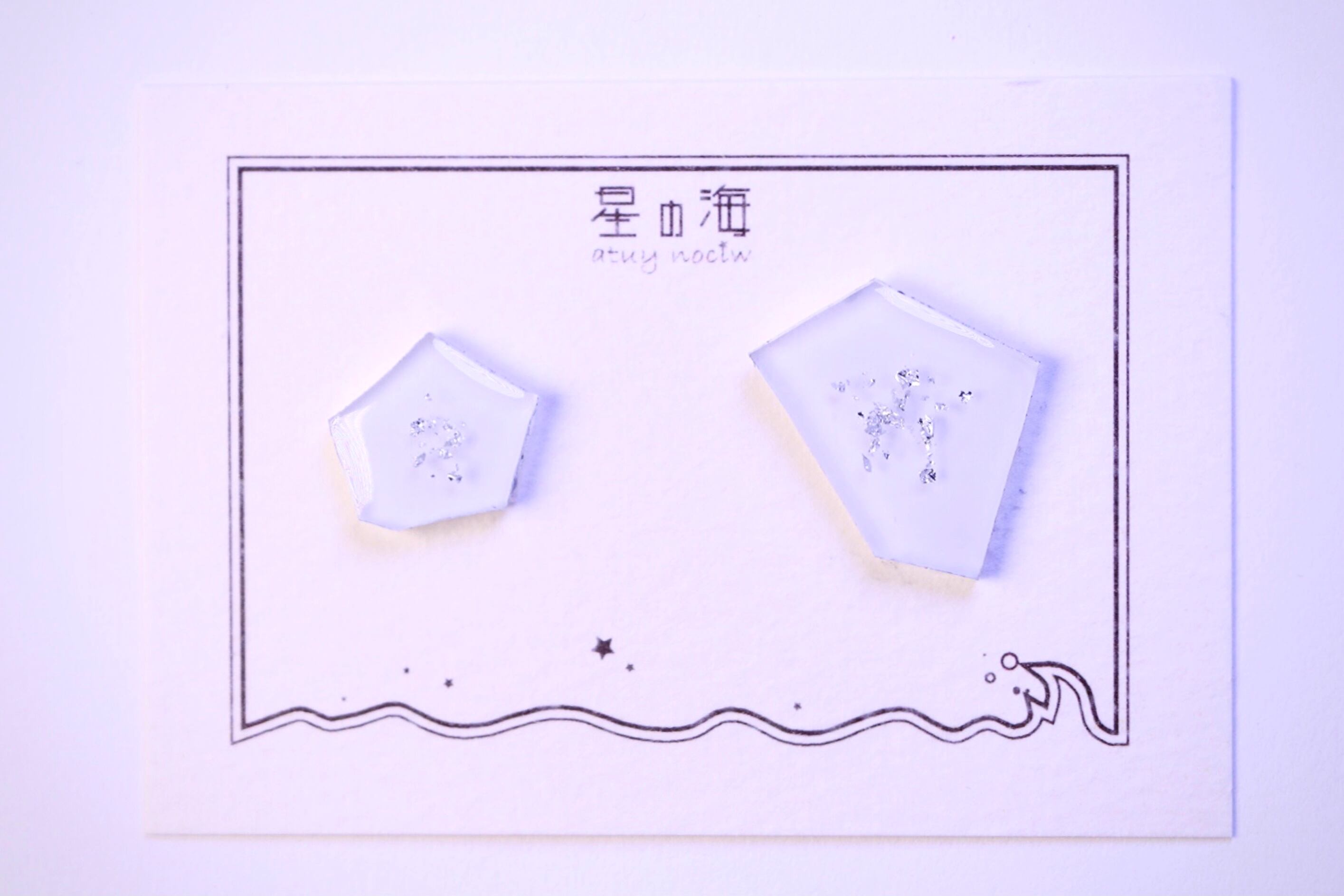 ハンドメイド アクセサリー ピアス イヤリング ノンホールピアス 樹脂 レジン かわいい 綺麗 高見え プレゼント ギフト 彼女 友人 恋人 カジュアル 秋 ファッション コーディネート 服 デザイン 秋色 かっこいい ユニセックス シルバー 宝石 大ぶり アシンメトリー クール
