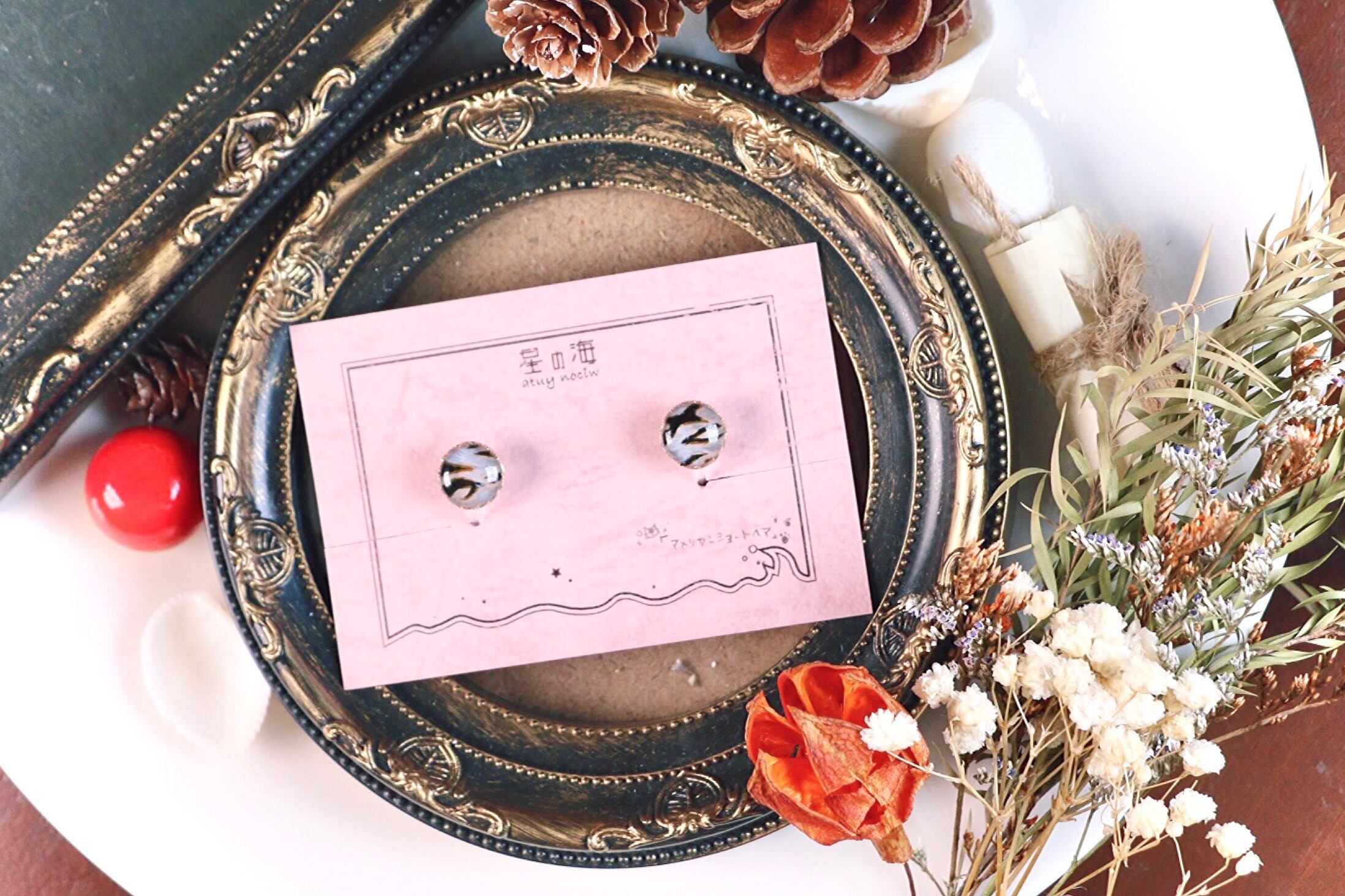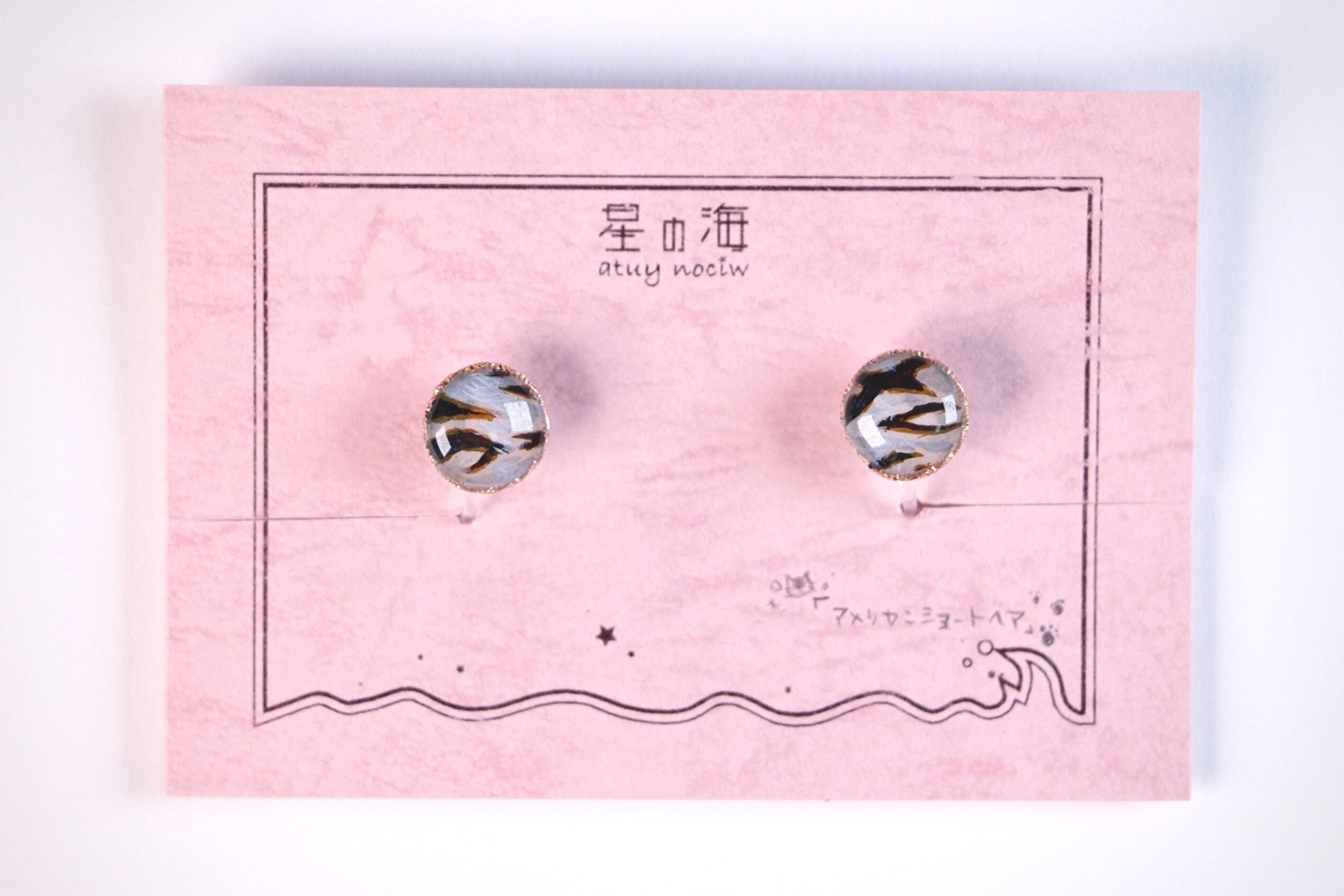うちのこにゃんこ アメリカンショートヘア (ノンホールピアス 手描き 猫 柄)