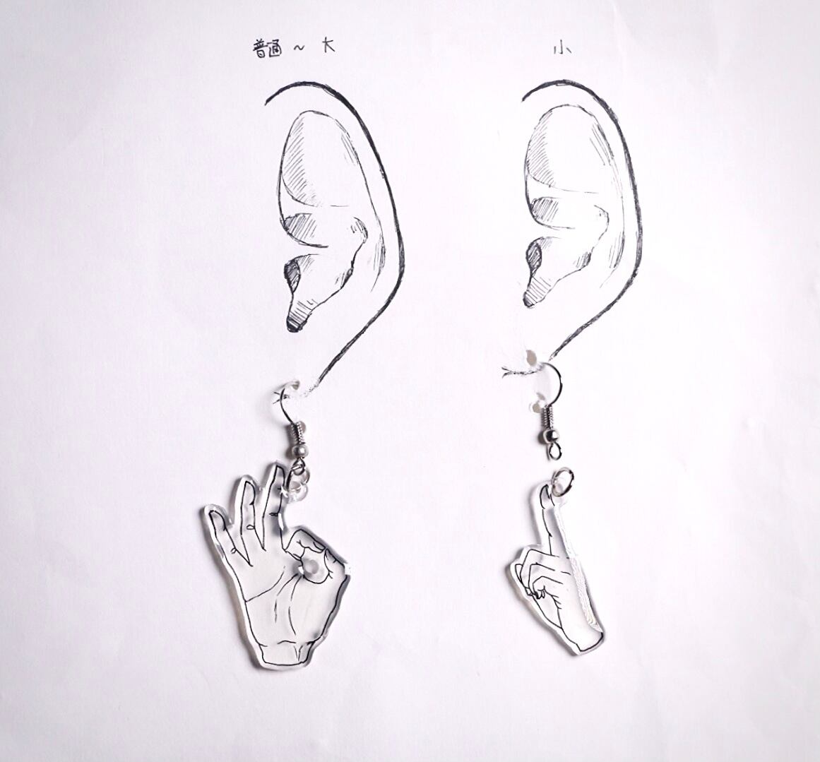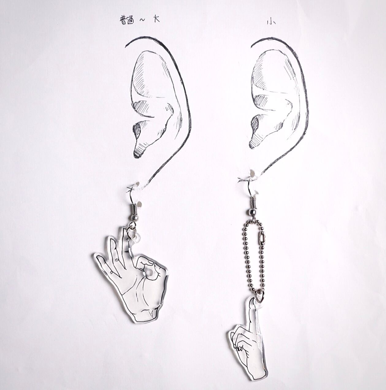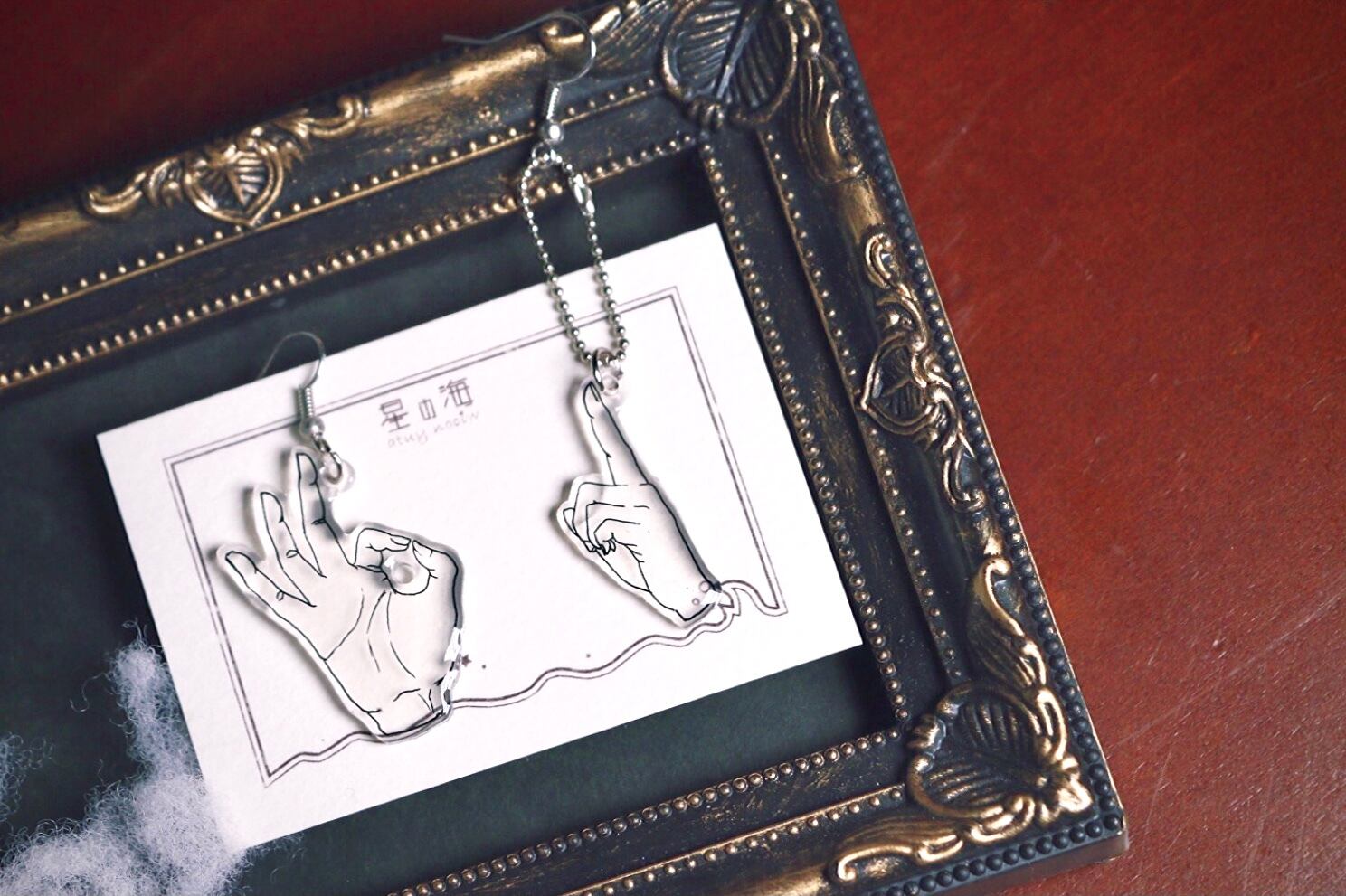 ハンドメイド アクセサリー ピアス イヤリング シルバー 手描き クリア レジン プラ板 黒 手 おてて 手癖 個性的 透明 軽い アシンメトリー OK しー 静かに 指 フェチ 古着 ファッション コーディネート プレゼント クリスマス ユニセックス 男女 彼氏 彼女 おそろい
