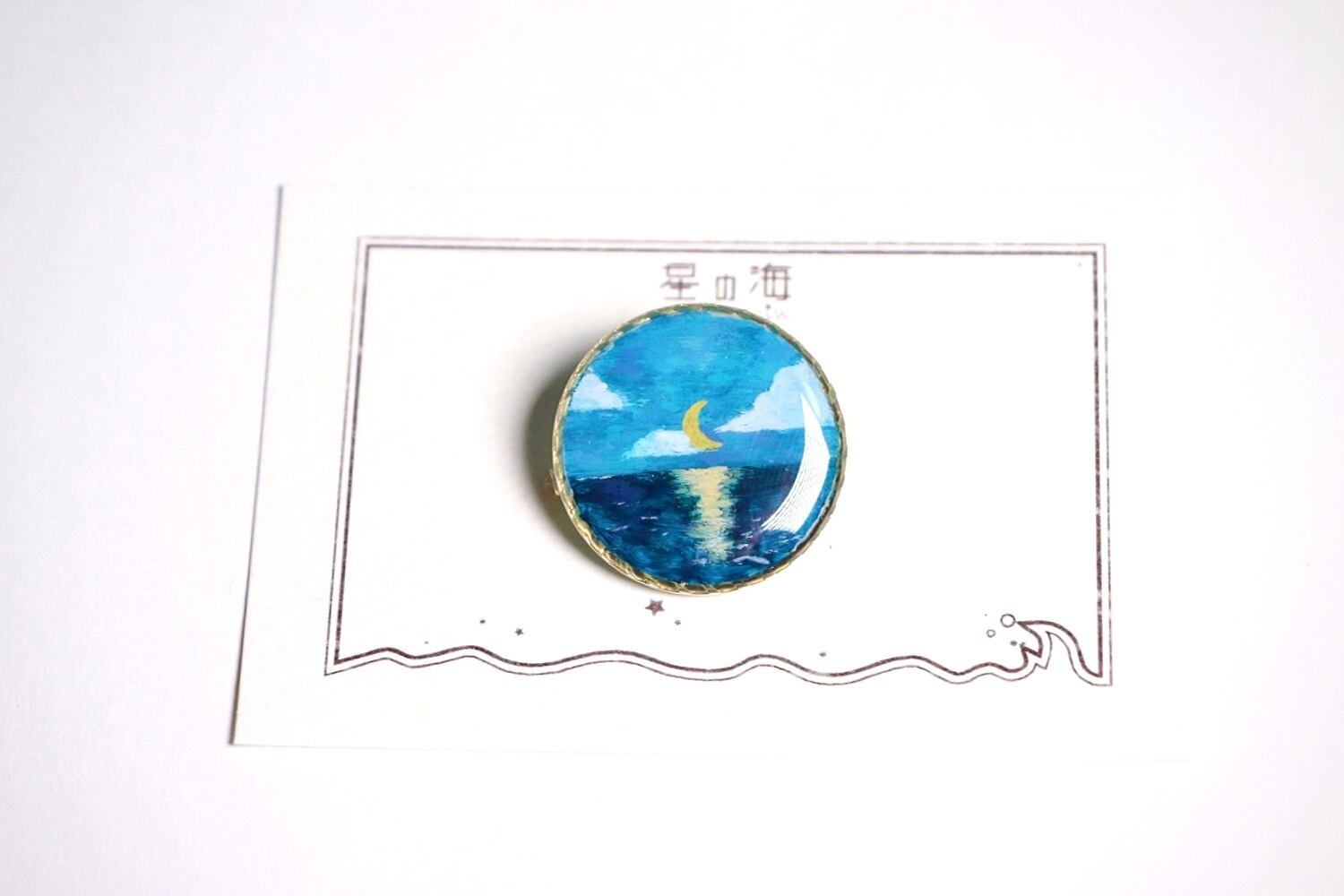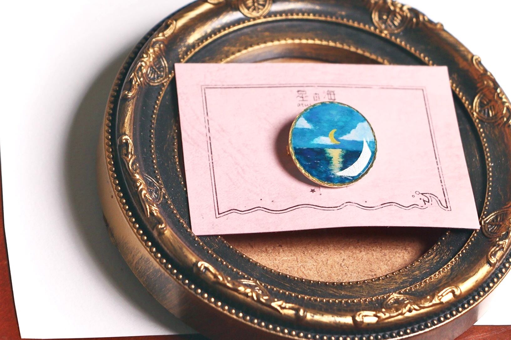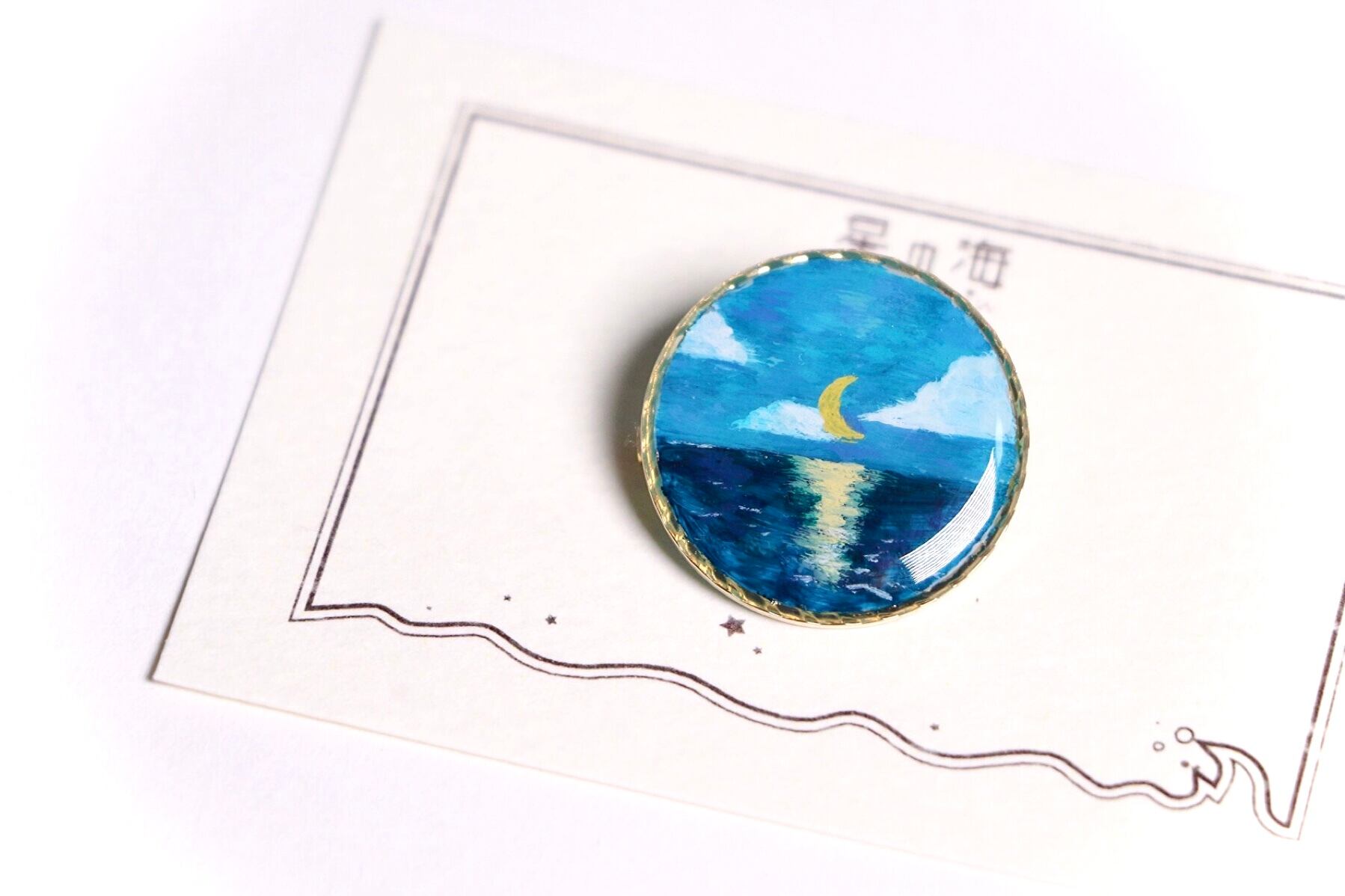 ムーンリバー (ブローチ レジン 手描き 月 海)