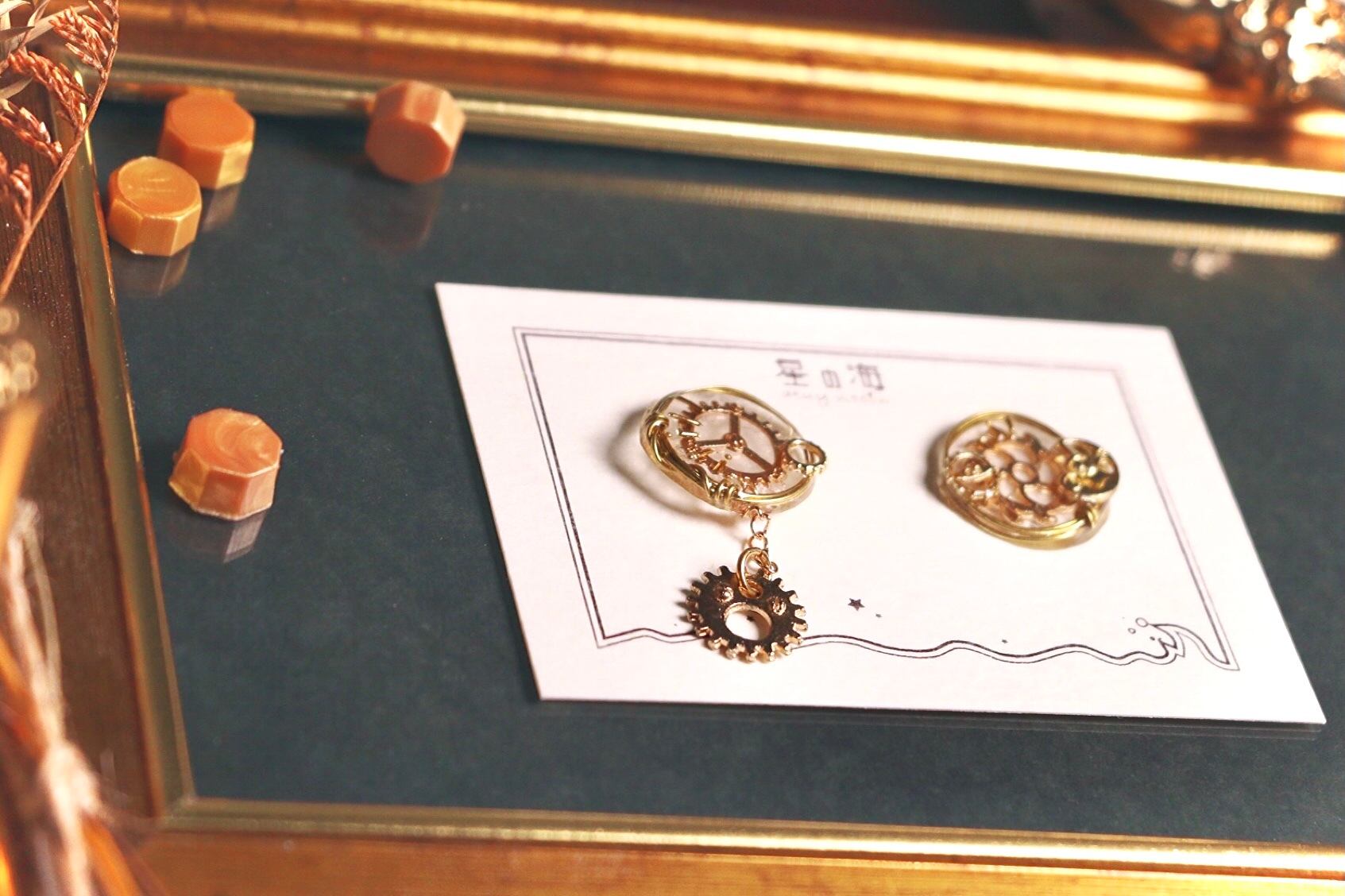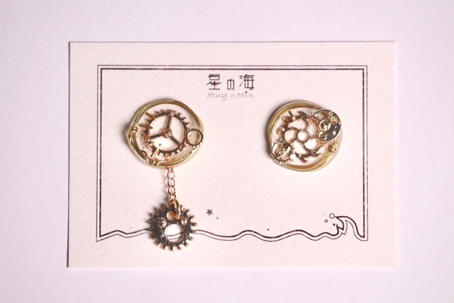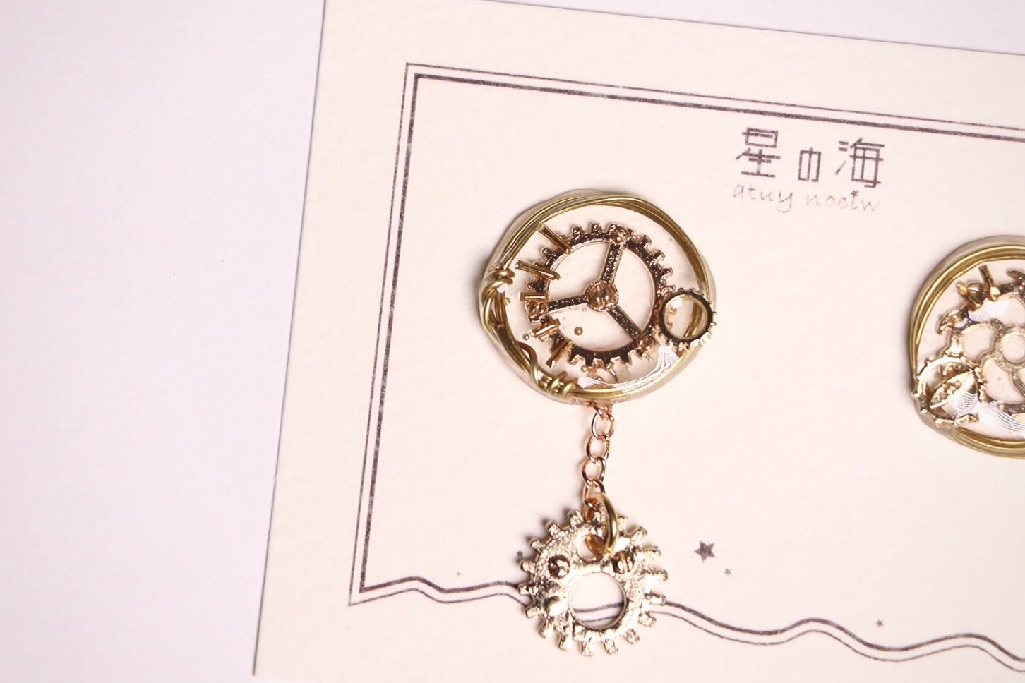 時代 (歯車 ゴールド スチームパンク ピアス イヤリング)