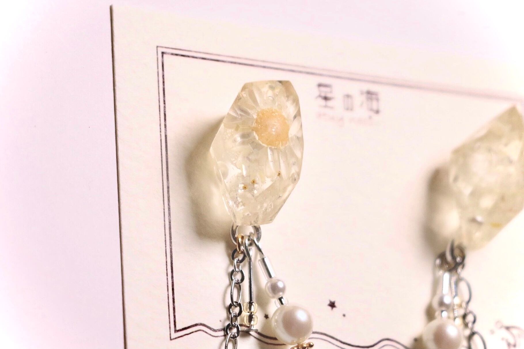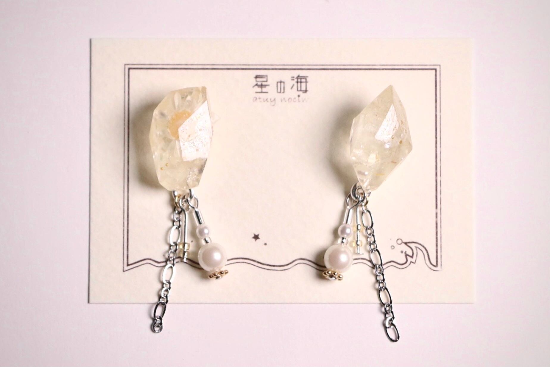 伏し目 (鉱石 白 透明 シルバー パール イヤリング)