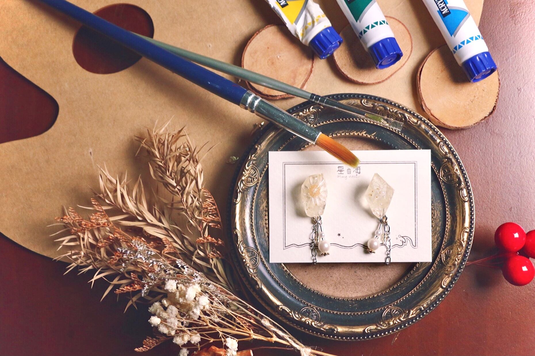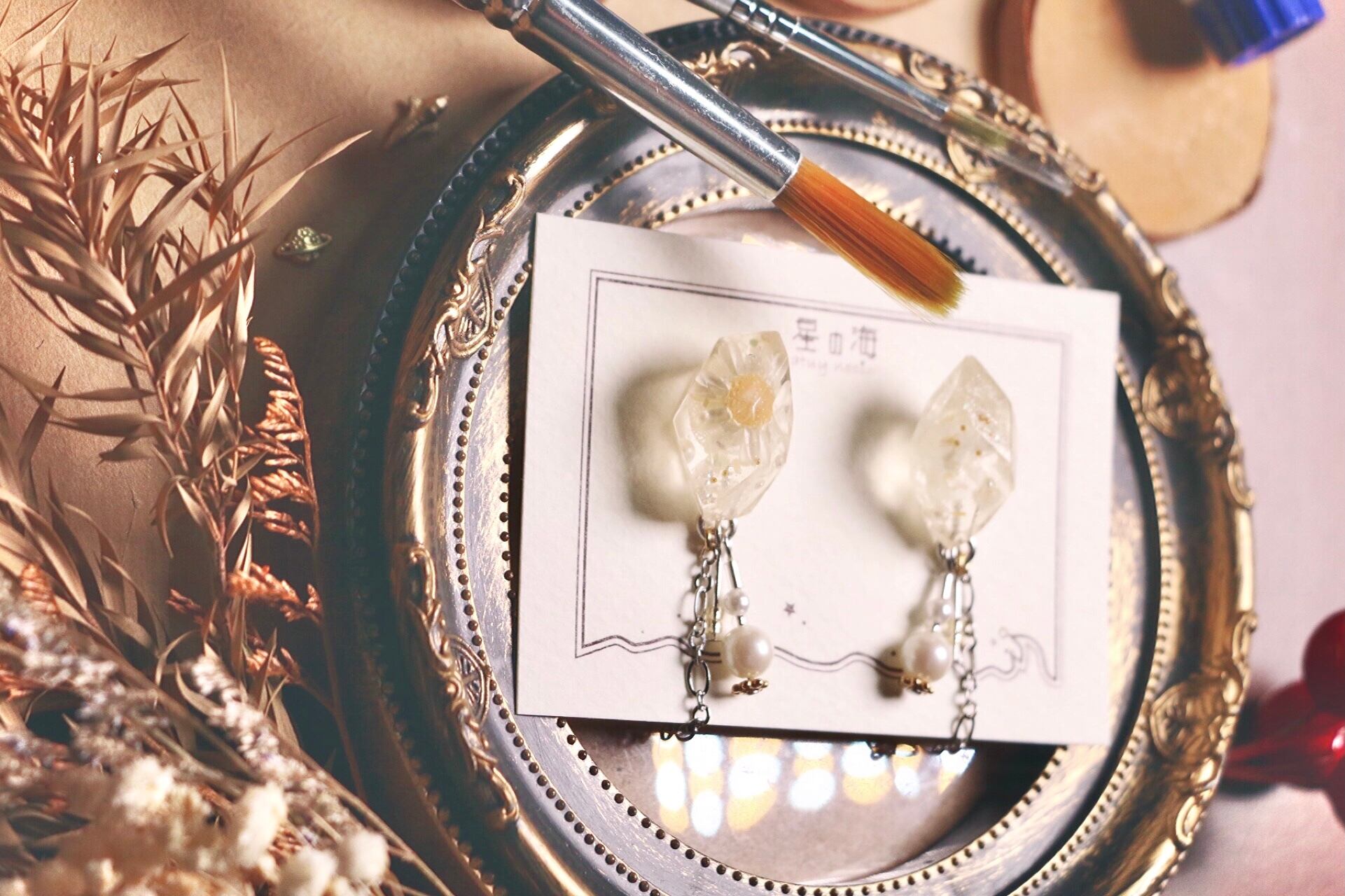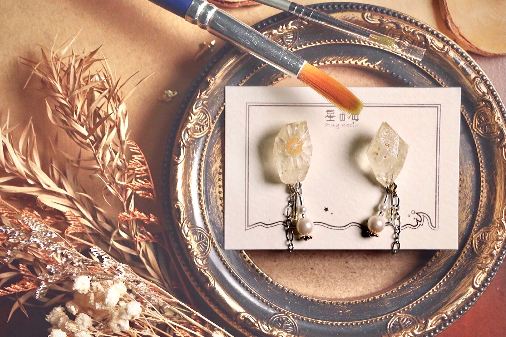 久しぶりの鉱石レジンからシャラリと揺れるドライフラワー作品が登場!