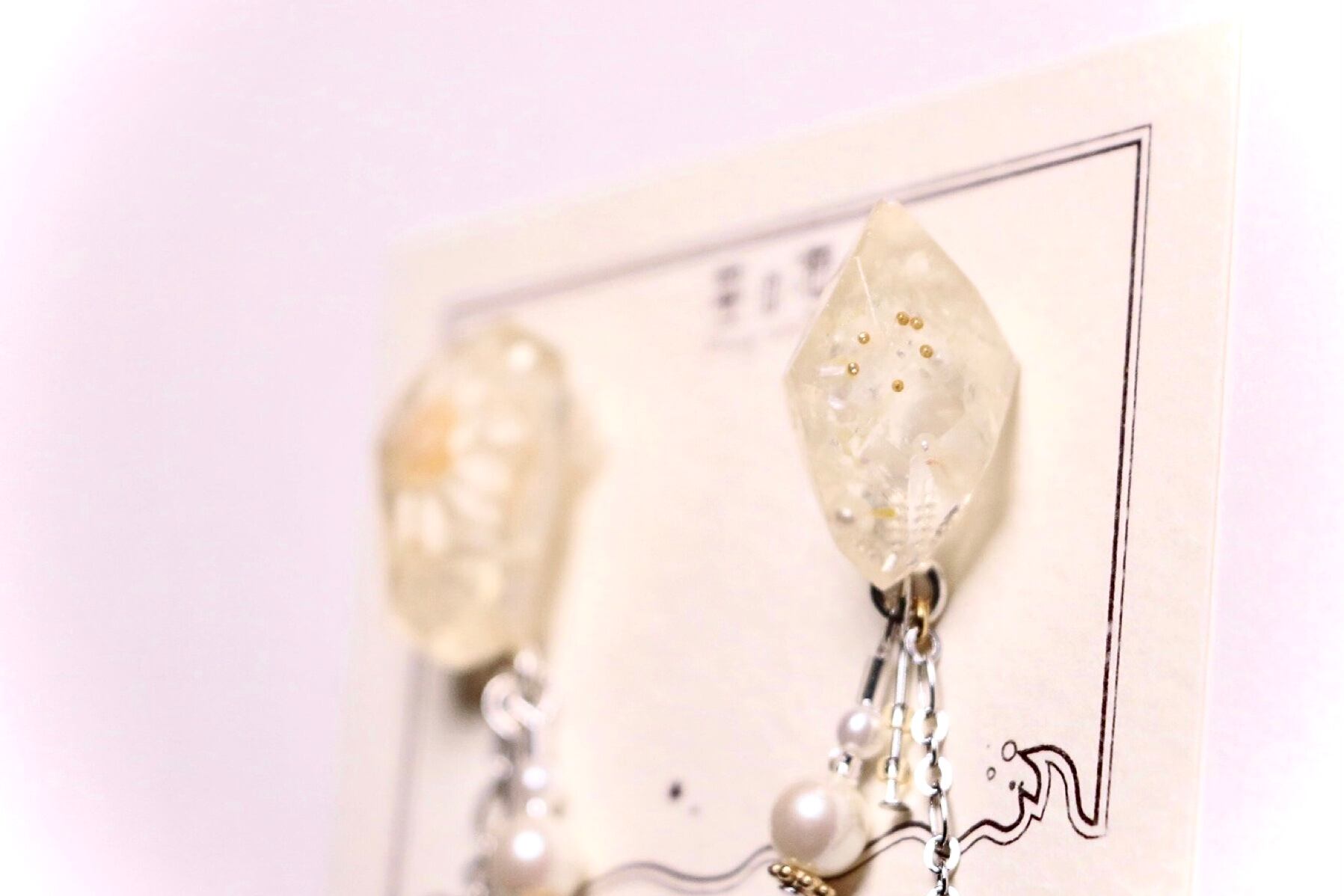 ハンドメイド アクセサリー イヤリング クリア ゴールド レトロ お菓子 宝石 レジン 大人かわいい 遊び心 おちゃめ キラキラ ときめく グミ 飴 かわいい きれい ホワイト 鉱石 ドライフラワー パール シルバー シェル 韓国風 大ぶり ジャラジャラ ゆれる 透明感 個性的 白 ホワイト 透明 チェーン