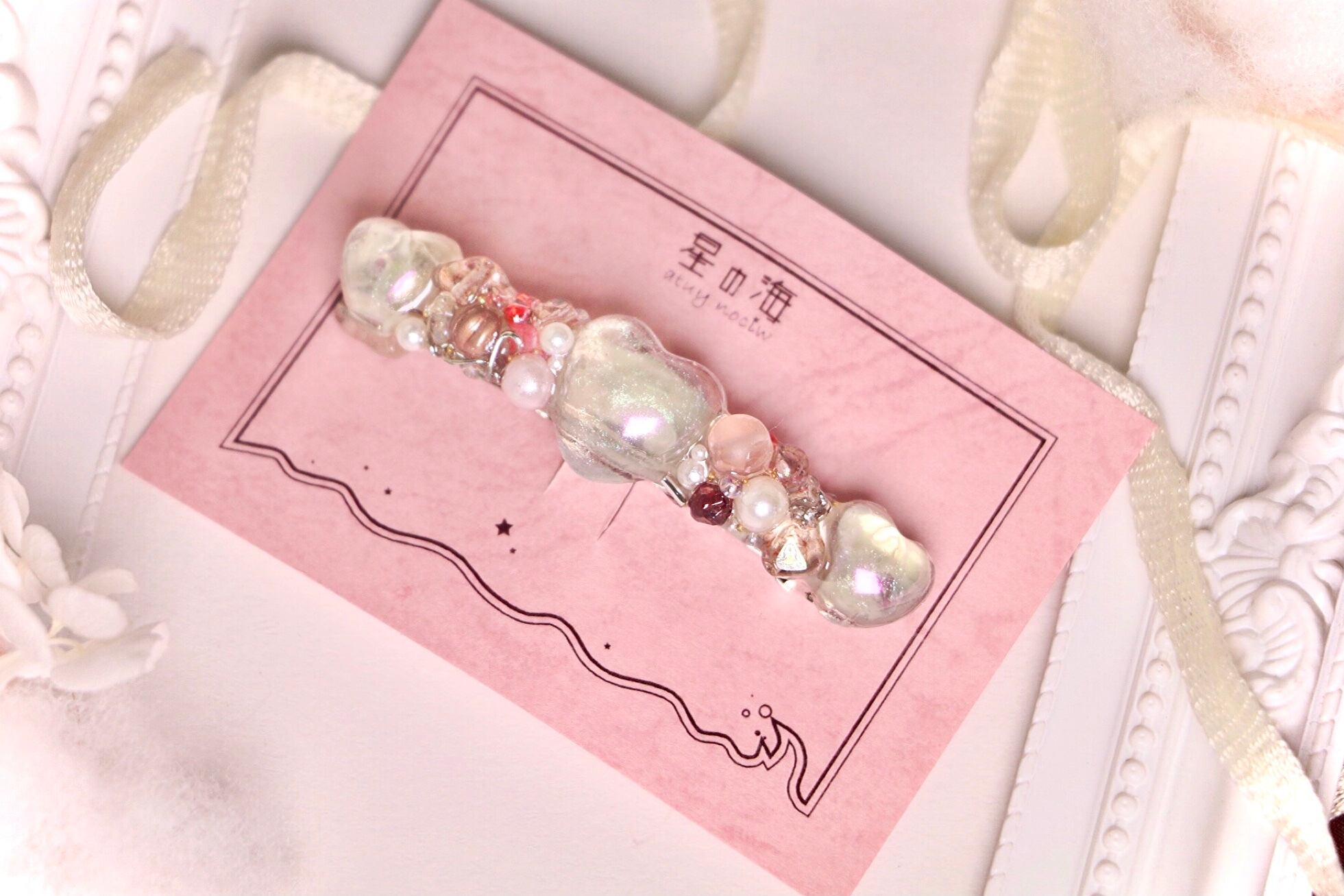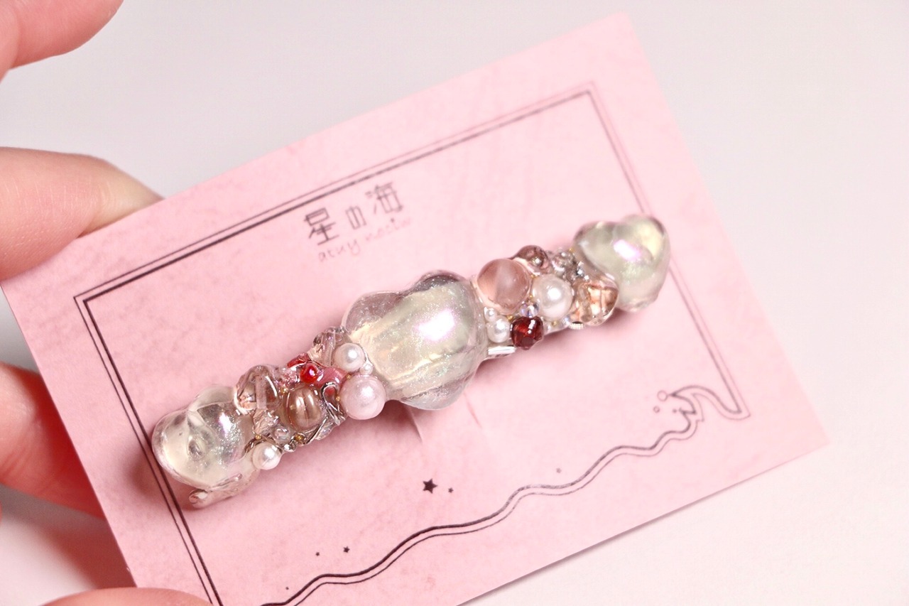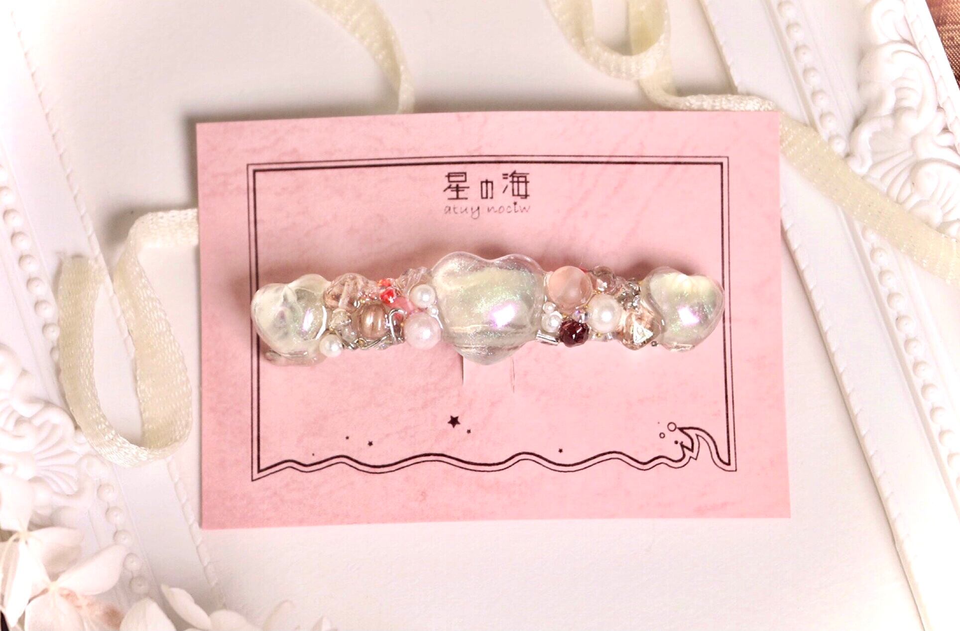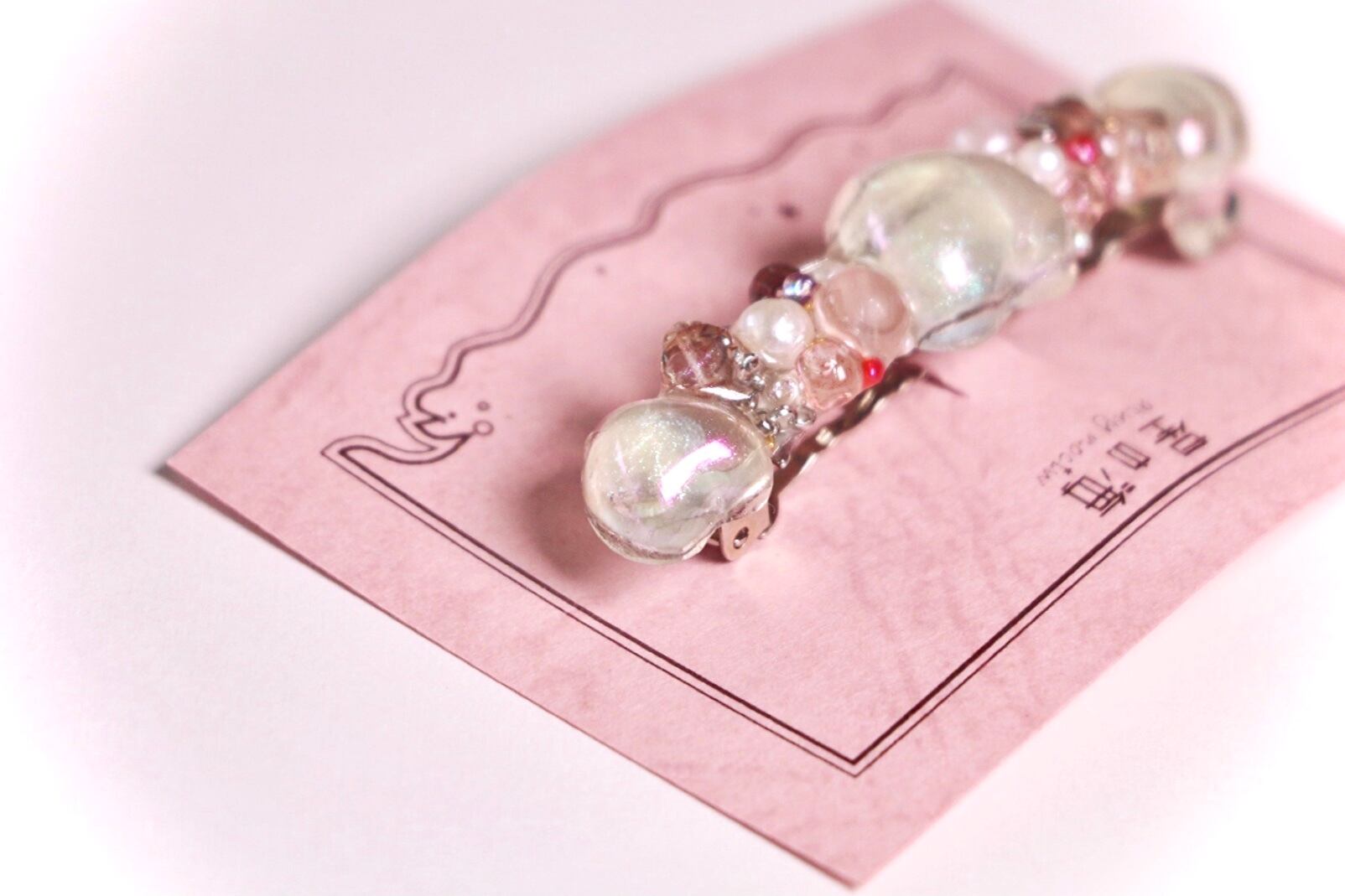 ハンドメイド アクセサリー ヘア バレッタ アレンジ レジン チェコ ガラス ビーズ チェーン キラキラ オーロラ 色が変わる ゴールド キャンディ 美味しそう かわいい プレゼント スイーツ 好き ホワイトデー プレゼント ギフト 彼女 恋人 友人 ご褒美 お菓子言葉 意味 ぎっしり ハウル バレンタインのお返し 入学式 入園式 シルバー ハート 地雷系 量産型 ファッション コーディネート 女子 魔法少女 アイテム ピンク パール