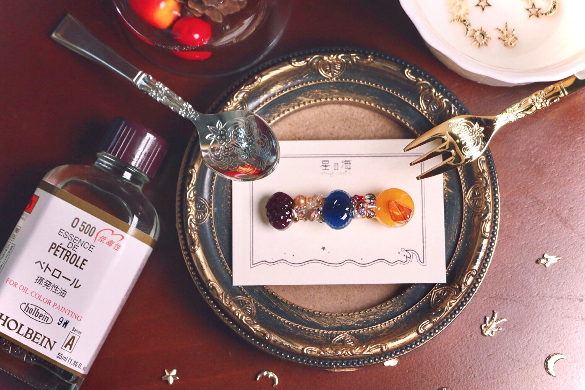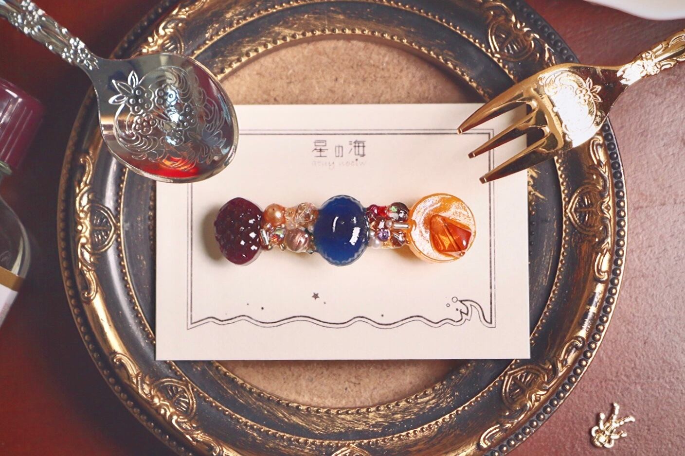 ハンドメイド アクセサリー ヘア バレッタ アレンジ レジン チェコ ガラス ビーズ チェーン キラキラ オーロラ 色が変わる ゴールド 金 喫茶店 レトロ キャンディ ドロップ メニュー 美味しそう かわいい プレゼント スイーツ カフェ 昭和 好き ホワイトデー プレゼント ギフト 彼女 恋人 友人 ご褒美 お菓子言葉 意味 ぎっしり 渋い ハウル 原色 バレンタインのお返し 大人っぽい 黄土色 青 深紫