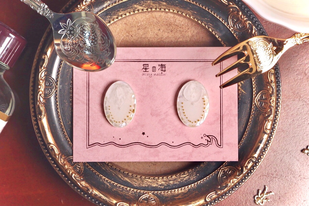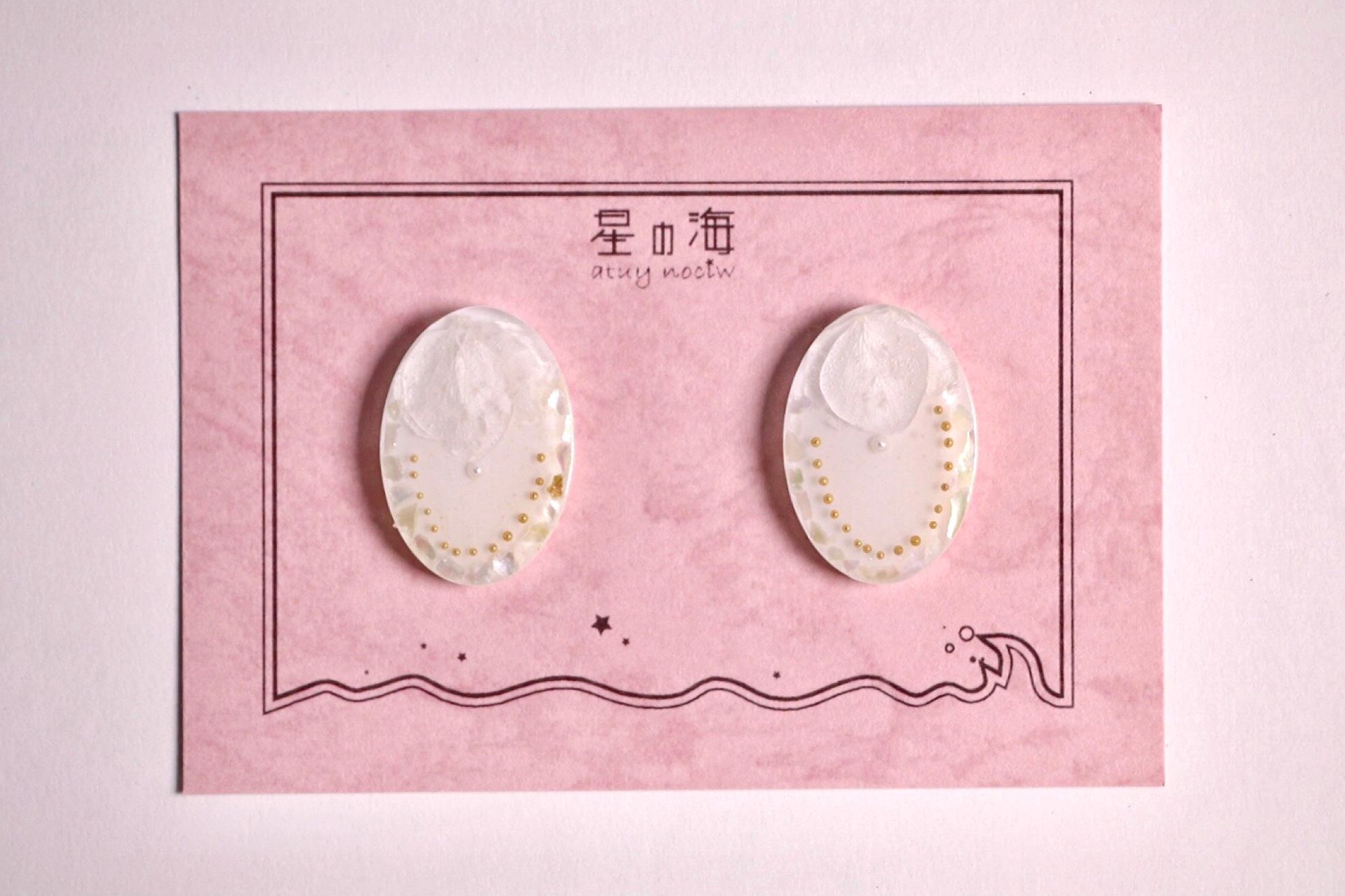 ハンドメイド アクセサリー 金アレ対応 ノンホールピアス クリア ゴールド レトロ 宝石 レジン 大人かわいい キラキラ ときめく かわいい きれい ホワイト ドライフラワー パール シェル 韓国風 大ぶり 透明感 個性的 白 ホワイト 透明 チェーン 紫陽花 ウェディング ドレス コーディネート 貝螺鈿 フレンチガーリー ガーリー ファッション