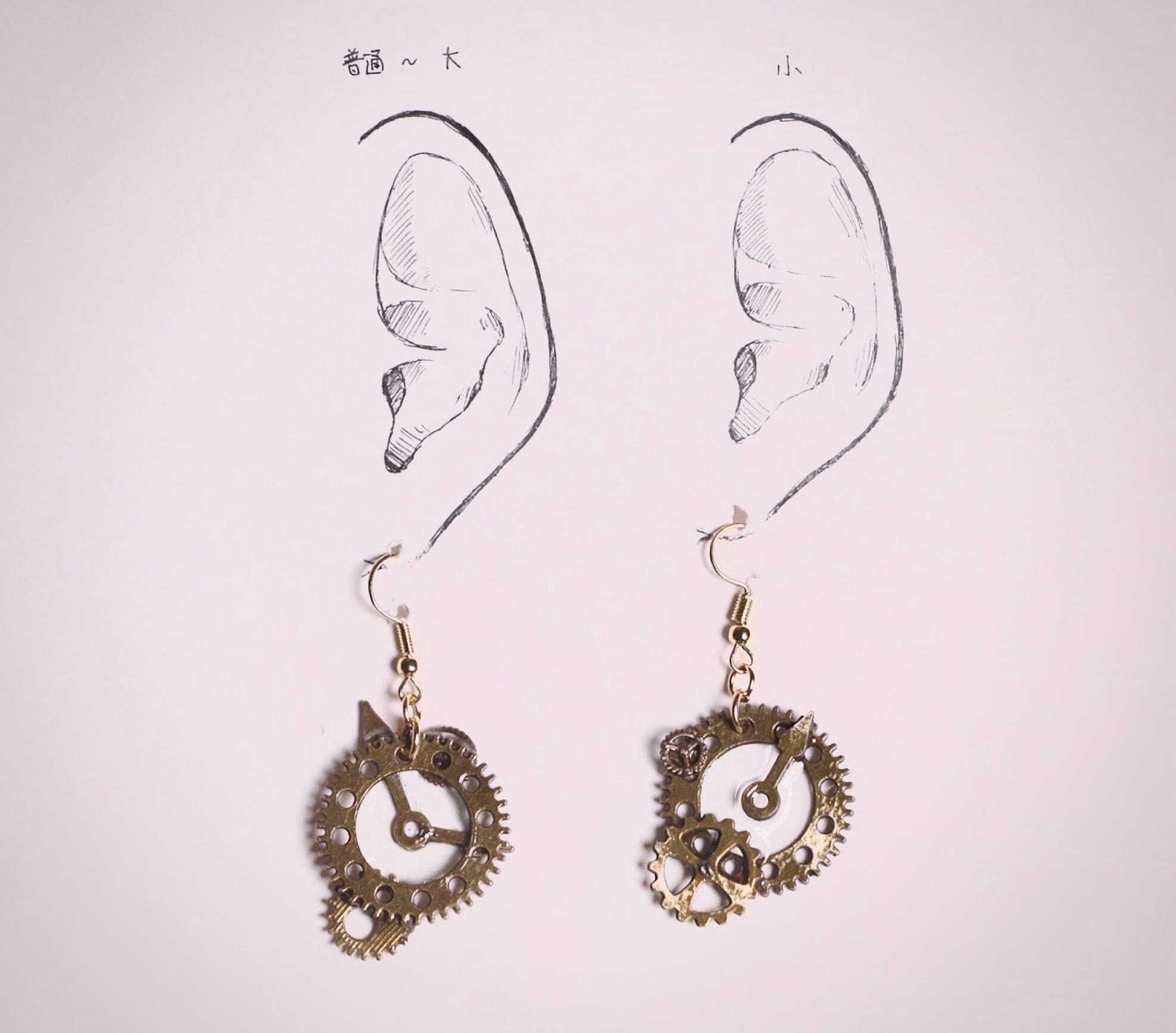 耳にかかるパーツは薄めのゴールドを選ぶことで、歯車が浮かんで見えるようにデザイン。