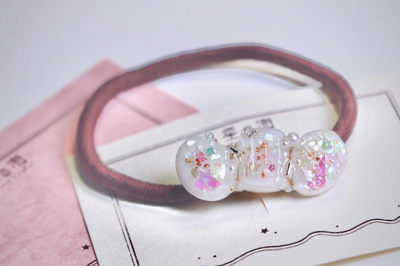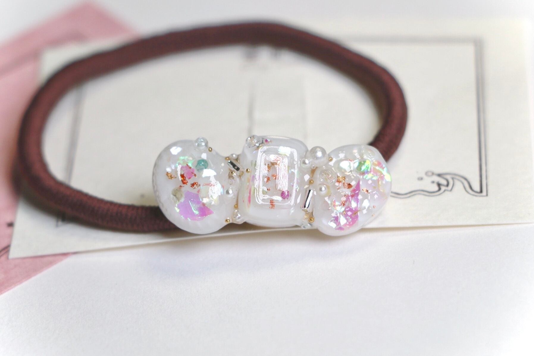 揺れる甘さ (ヘアゴム キャンディ ドロップ 白 オーロラ)