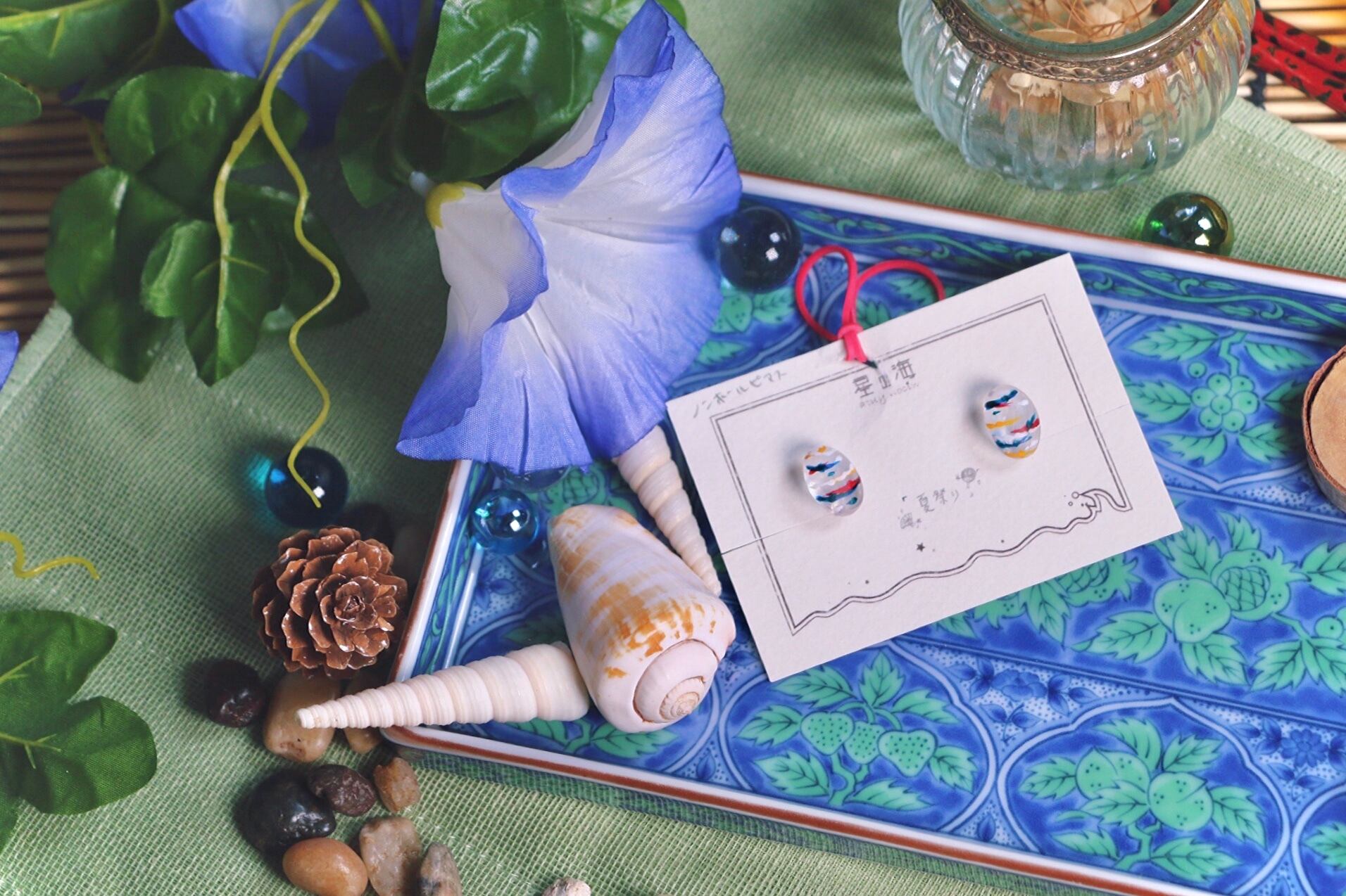 ハンドメイド アクセサリー ピアス イヤリング お祭り 浴衣 コーデ ファッション コーディネート 和風 チャイナ 中華 かわいい 綺麗 プレゼント ギフト 不思議 ヨーヨー 水風船 夏祭り 祭の 神社 赤 白 マット クリア 透明 オリジナル デザイン あやかし 妖狐 夏