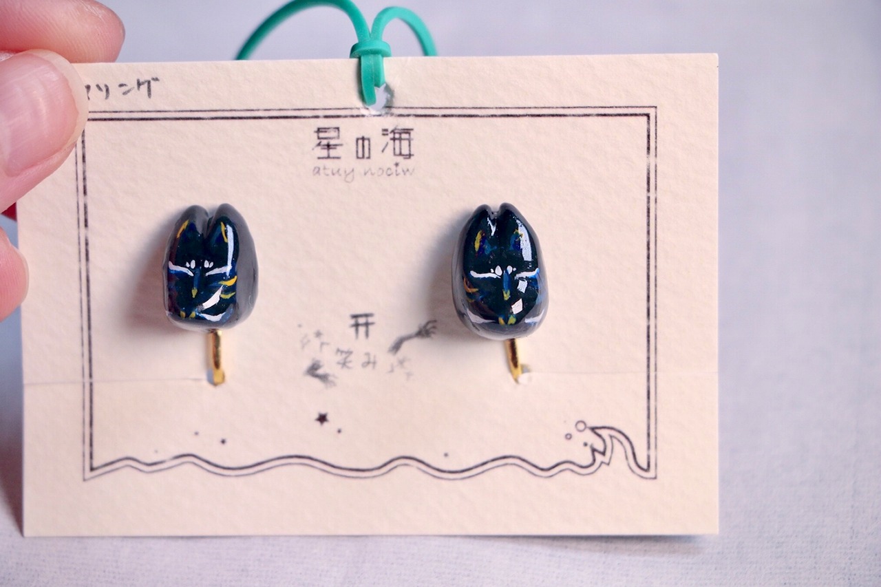 笑み (イヤリング 狐面 神社 きつね 祭 黒)