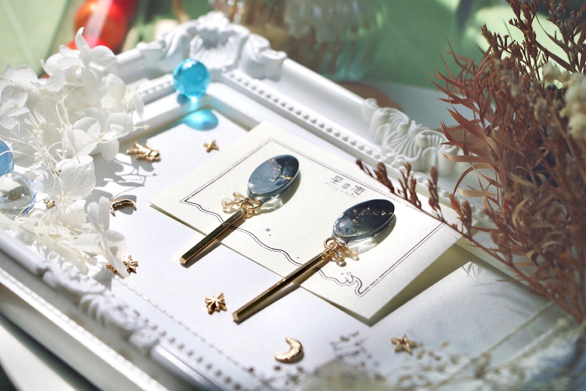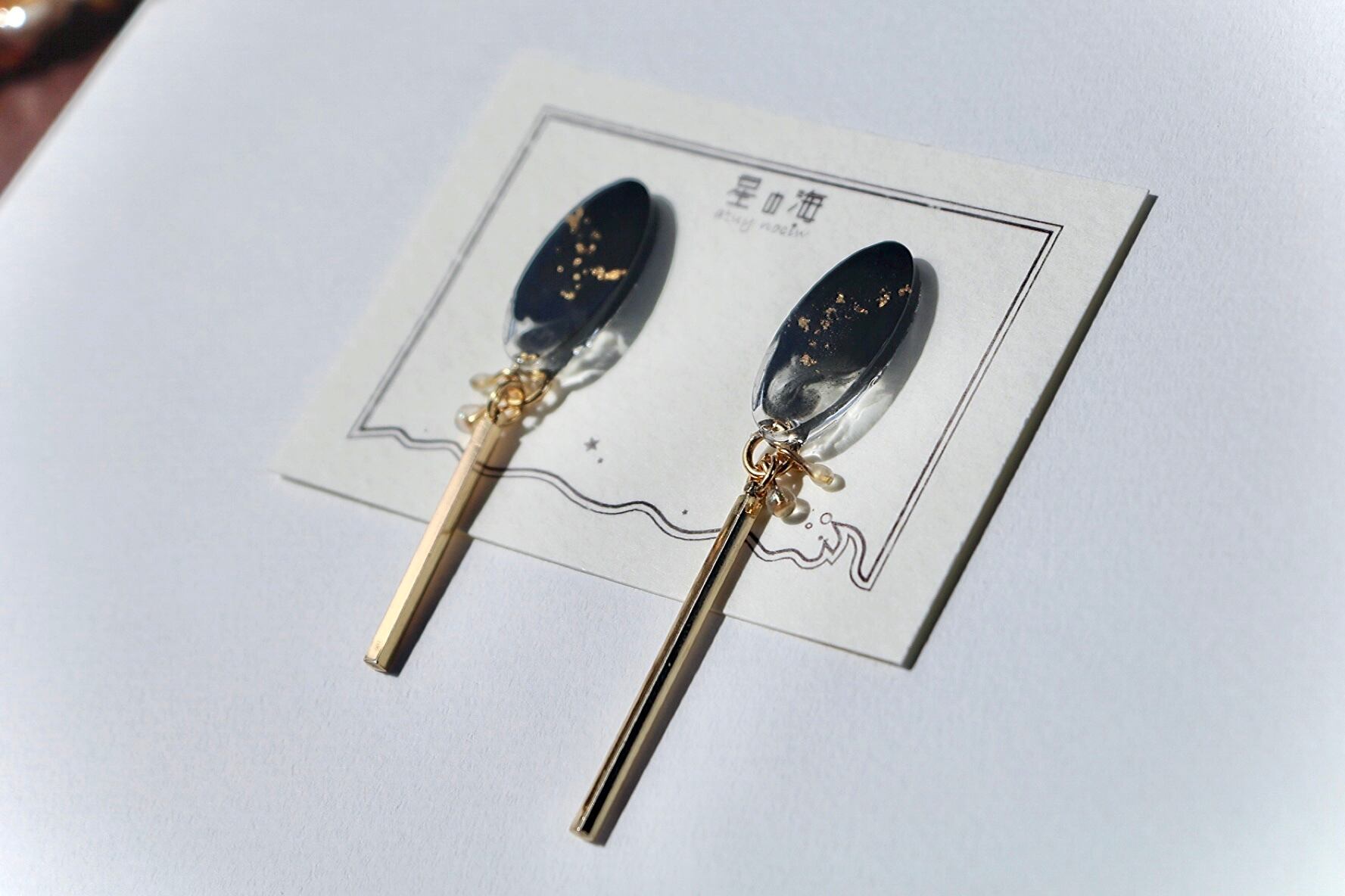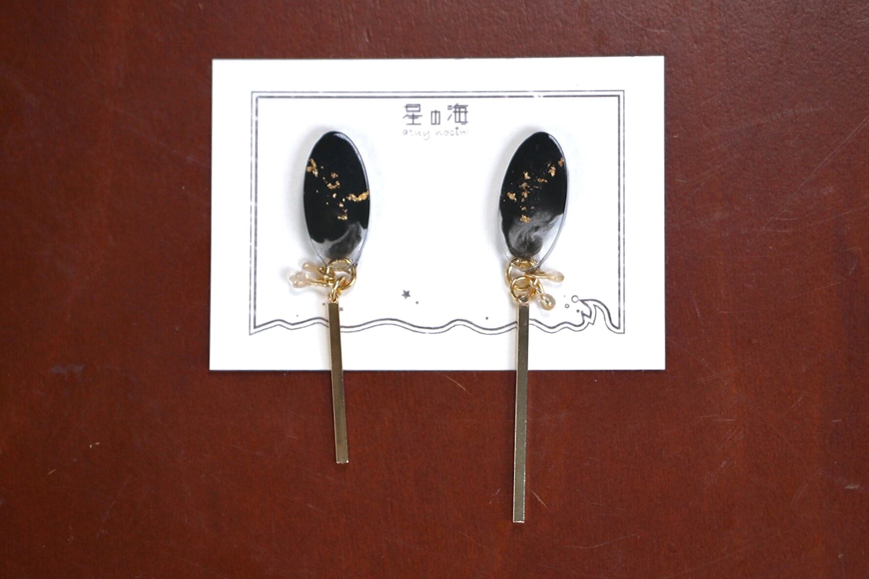 ハンドメイド ピアス イヤリング アクセサリー 手描き 大ぶり かわいい クリア 黒 ブラック きれい ファッション コーデ ゆれる ゴールド 大人っぽい おすすめ プレゼント ギフト おしゃれ 手作り デザイン 大ぶり オーバル 銀箔 オーロラ