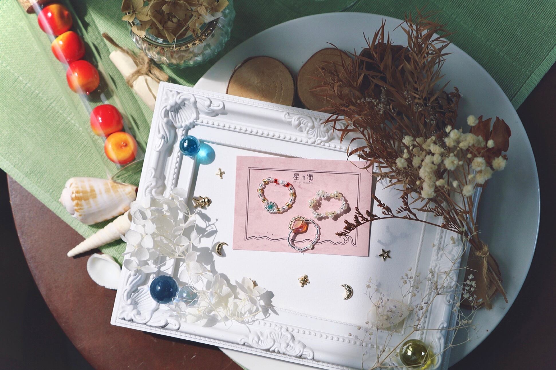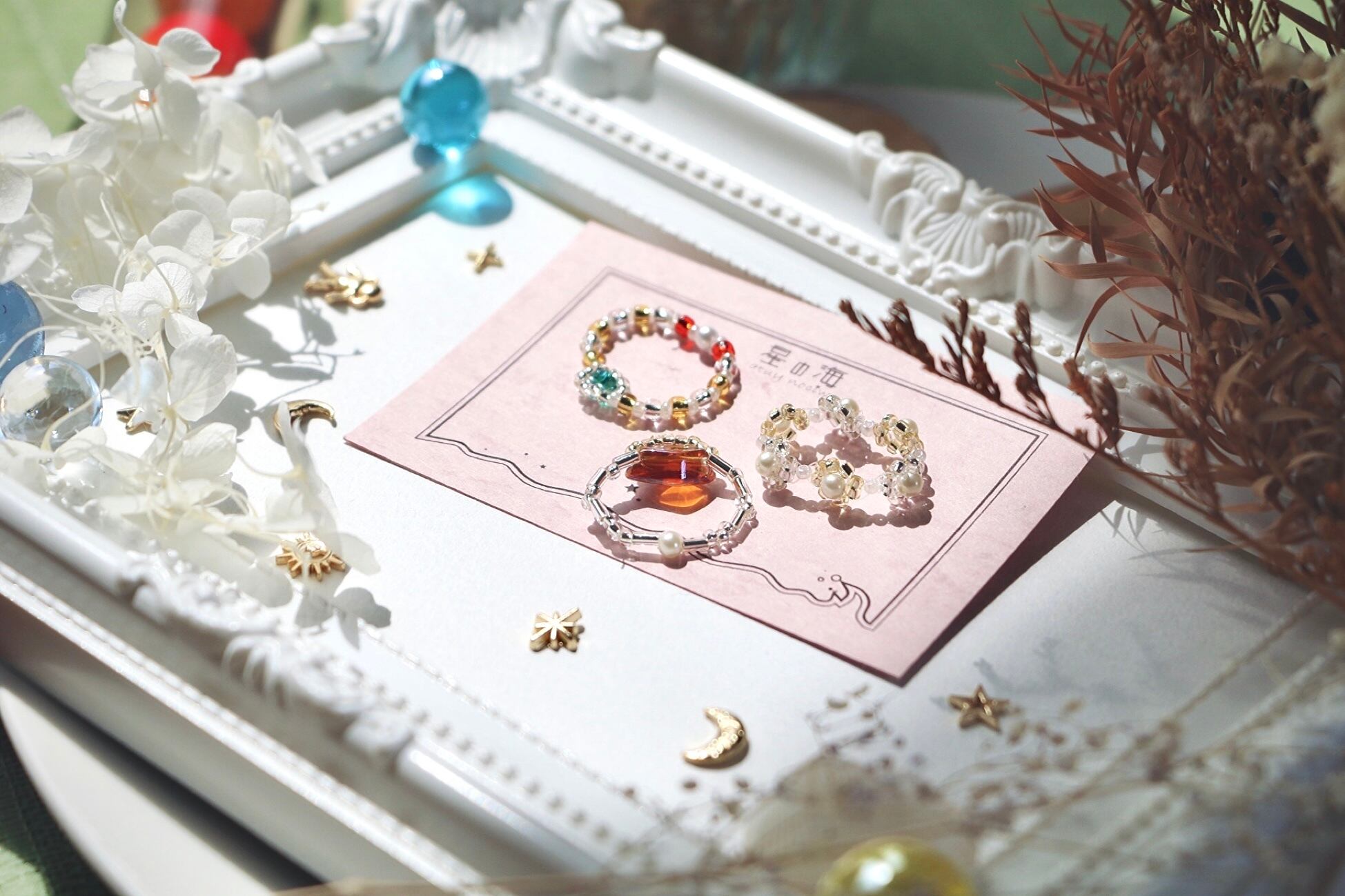ハンドメイド アクセサリー ビーズ リング セット キラキラ かわいい きれい おしゃれ プレゼント ギフト 恋人 友人 大人っぽい ファッション コーディネート 華奢 細め 使いやすい フラワー 花 白 ホワイト レース シルバー お得 模様 レトロ ハイカラ 赤 青 黄