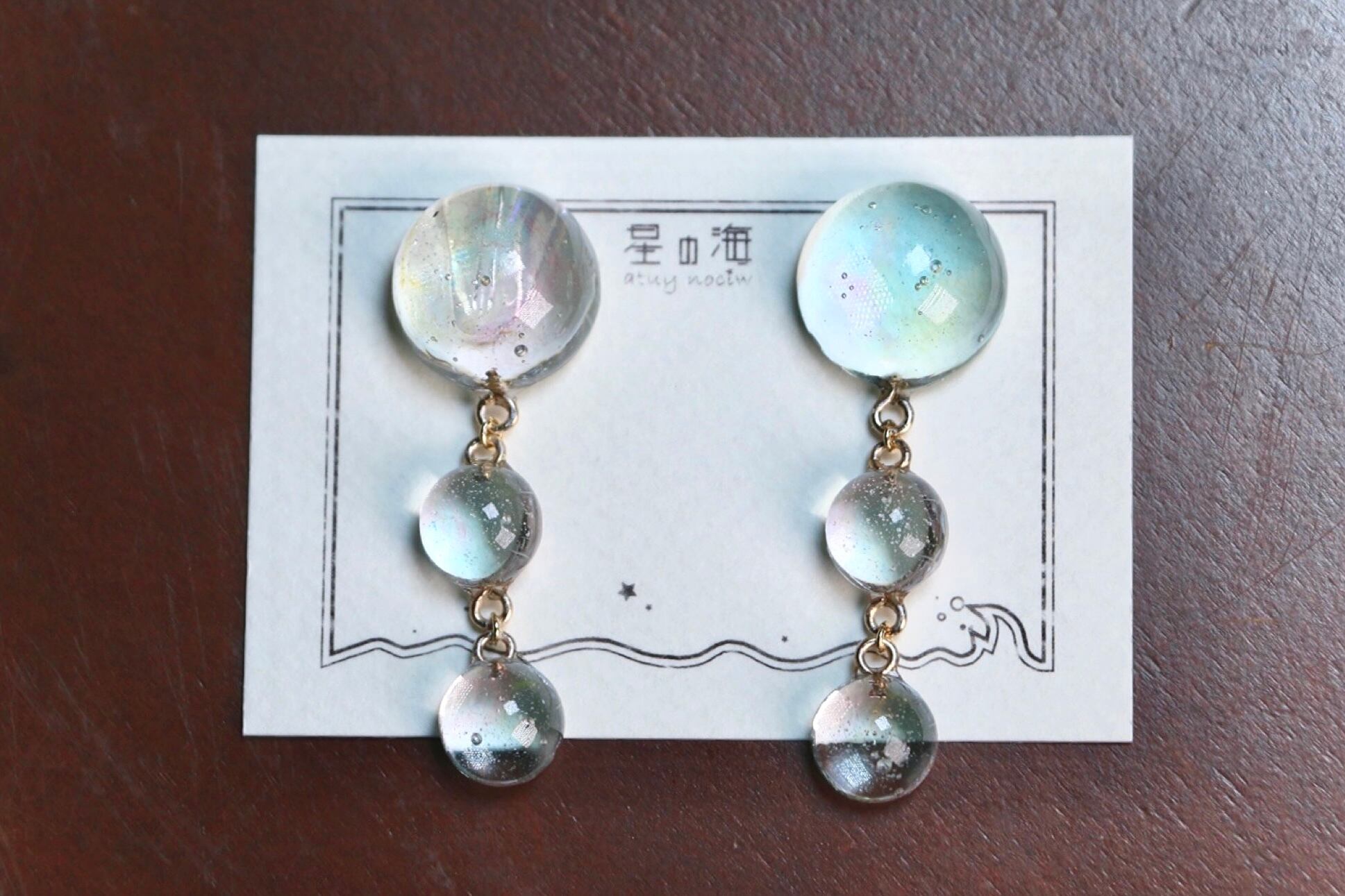 シャボン玉をイメージした透明感たっぷりな大ぶりイヤーアクセサリーが入荷!(ミニはこちらに→ https://atuynociw.thebase.in/items/52335633)