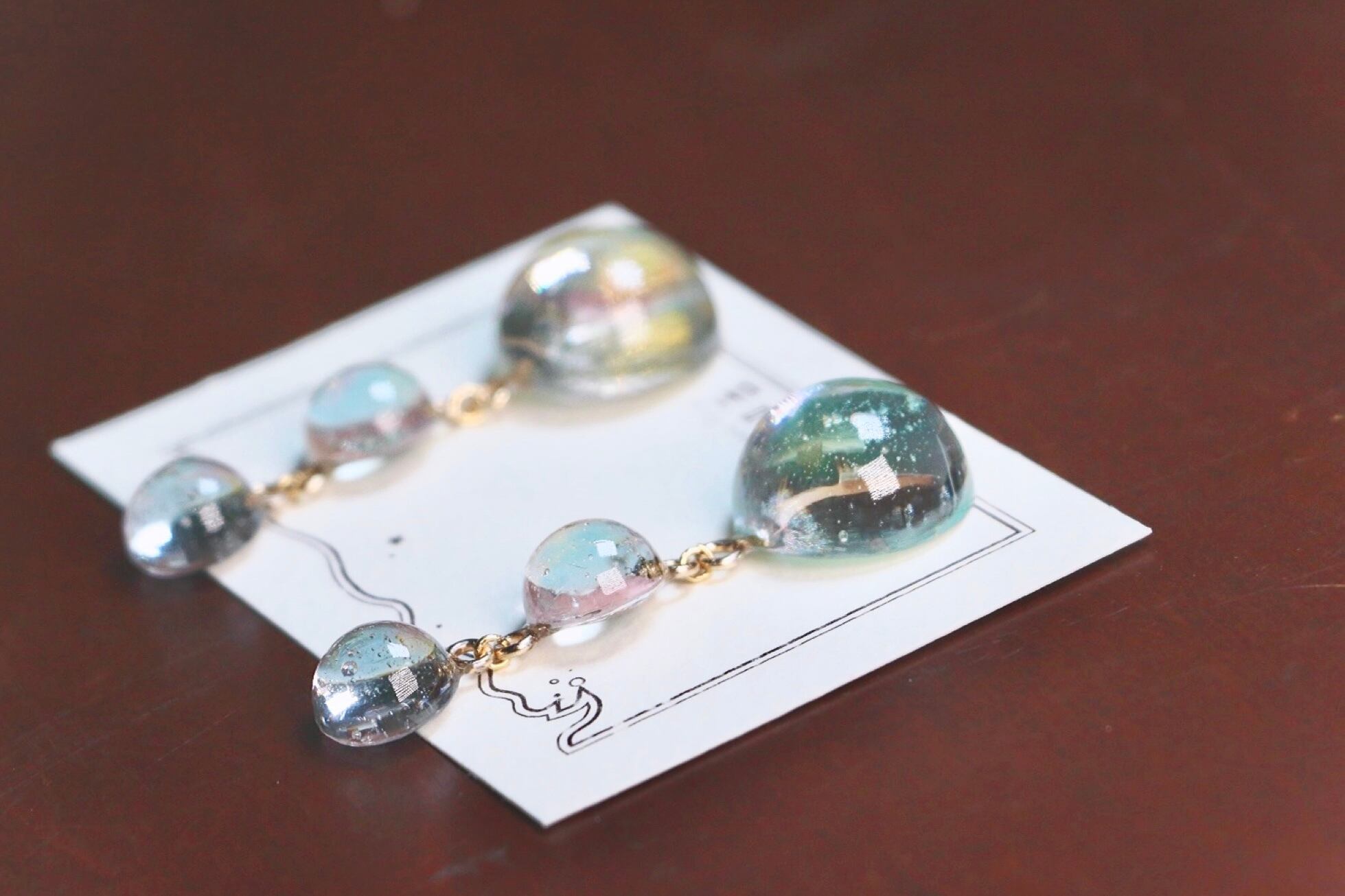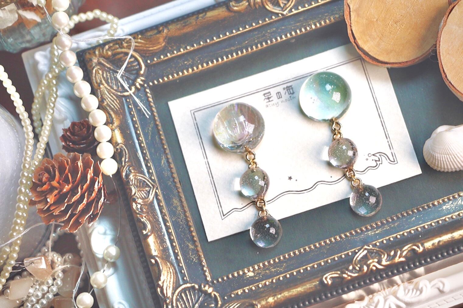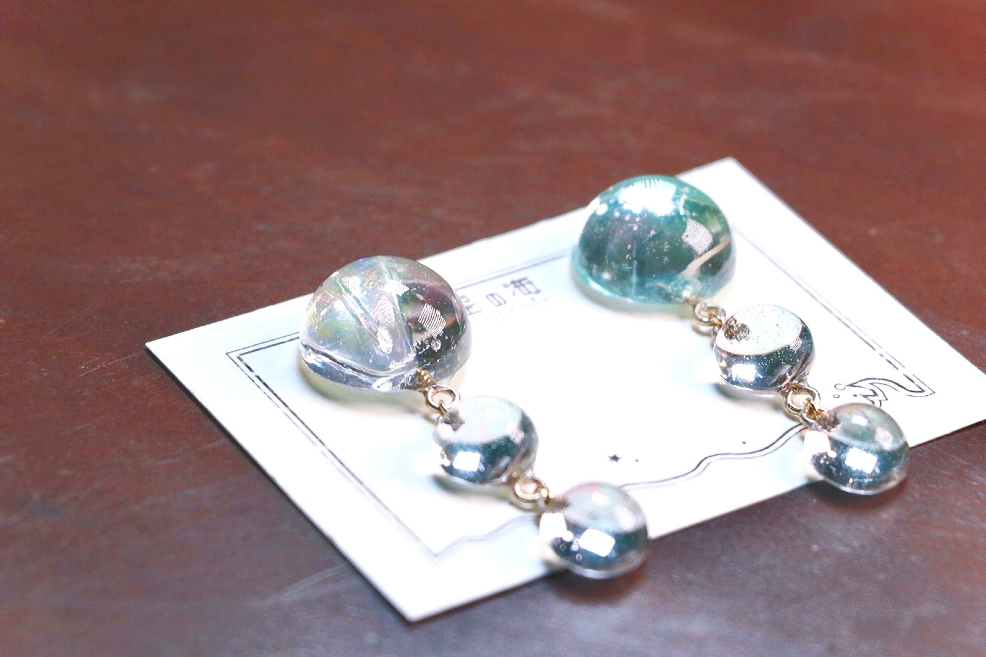 ハンドメイド アクセサリー ピアス イヤリング ノンホールピアス しゃぼん玉 シャボン玉 きれい かわいい レトロ 昭和レトロ 平成レトロ 駄菓子 ビー玉 おはじき オーロラ キラキラ プレゼント ギフト ファッション おしゃれ 三原色 透明感 クリア 秋 大ぶり 揺れる
