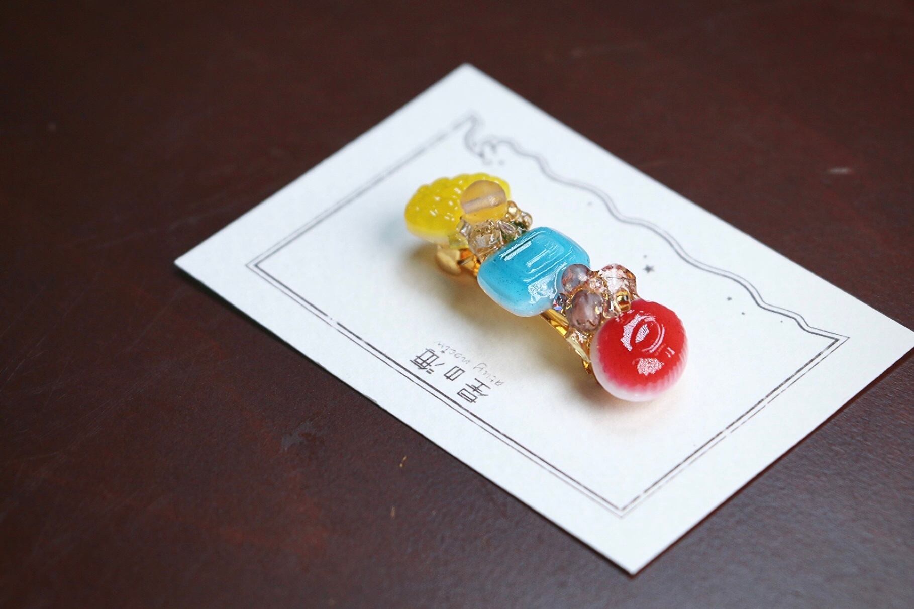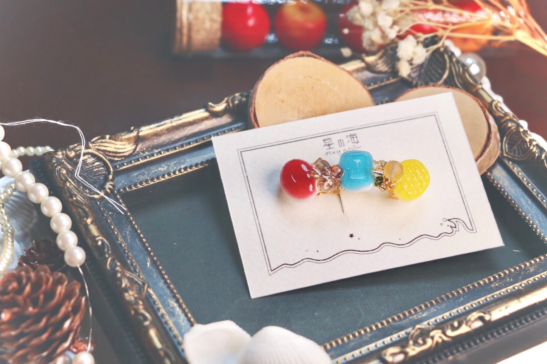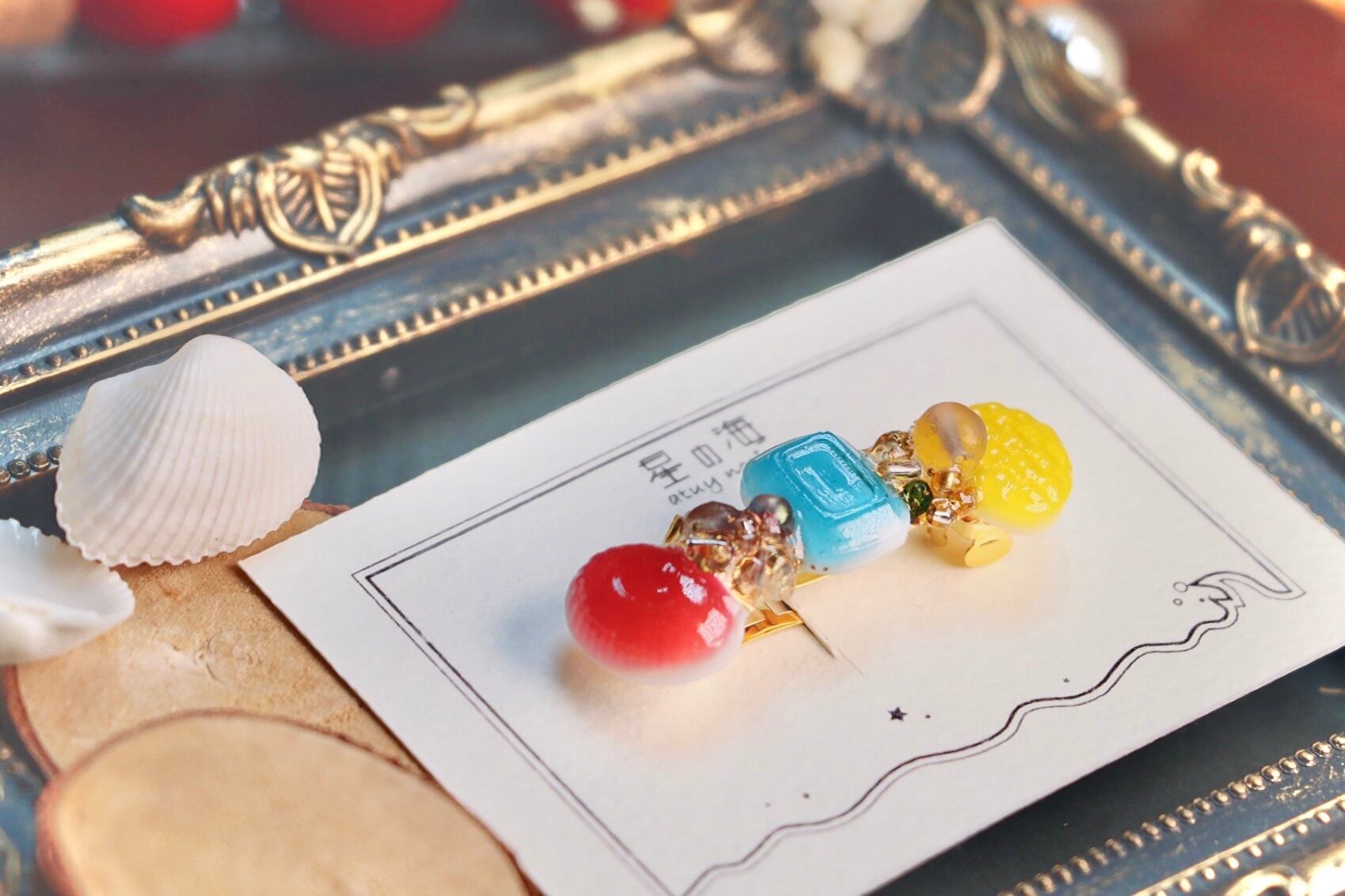 信号機 信号 カラー 色 ハンドメイド アクセサリー レジン ドロップ キャンディ カラフル 原色 三原色 キラキラ 和風 和菓子 駄菓子 レトロ ヘアアクセサリー バレッタ ゴールド ミニ お祭り 浴衣 飴
