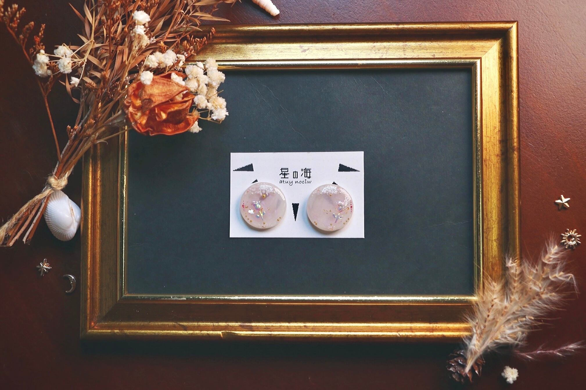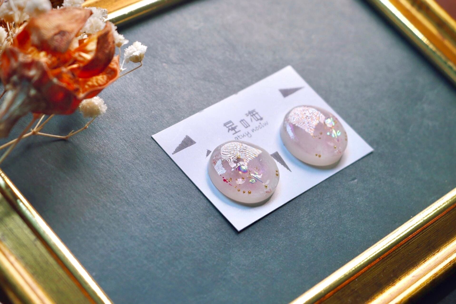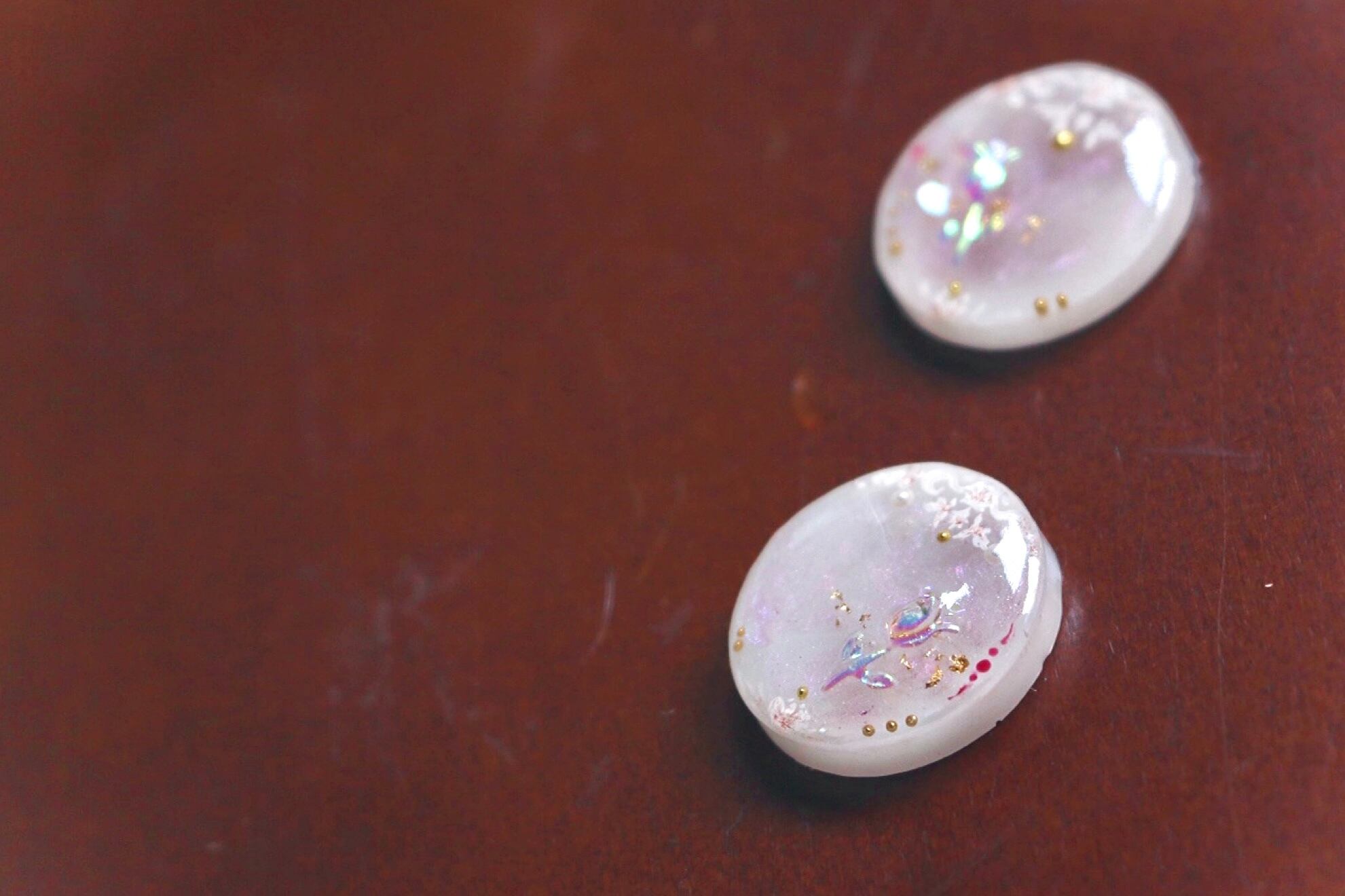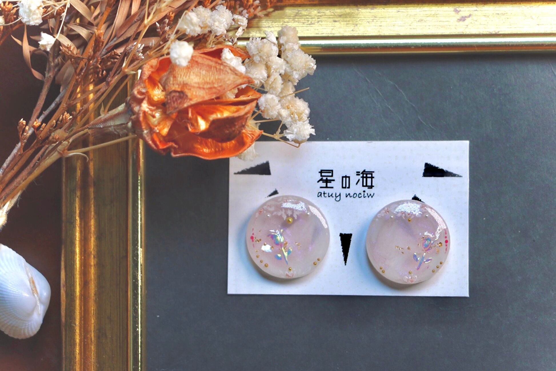 ハンドメイド ピアス イヤリング 透明感 優しい パール フレンチガーリー キラキラ レジン ビーズ かわいい きれい 手描き 絵付け 絵画 大ぶり 金 ゴールド きれいめ チューリップ 春 ピンク オーロラ 大人 可愛い