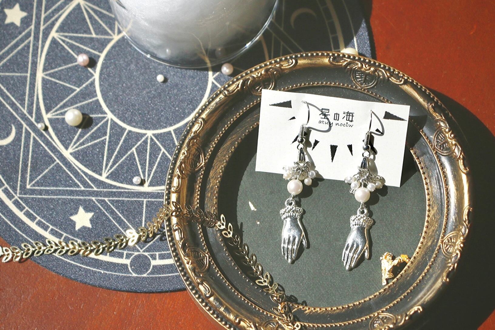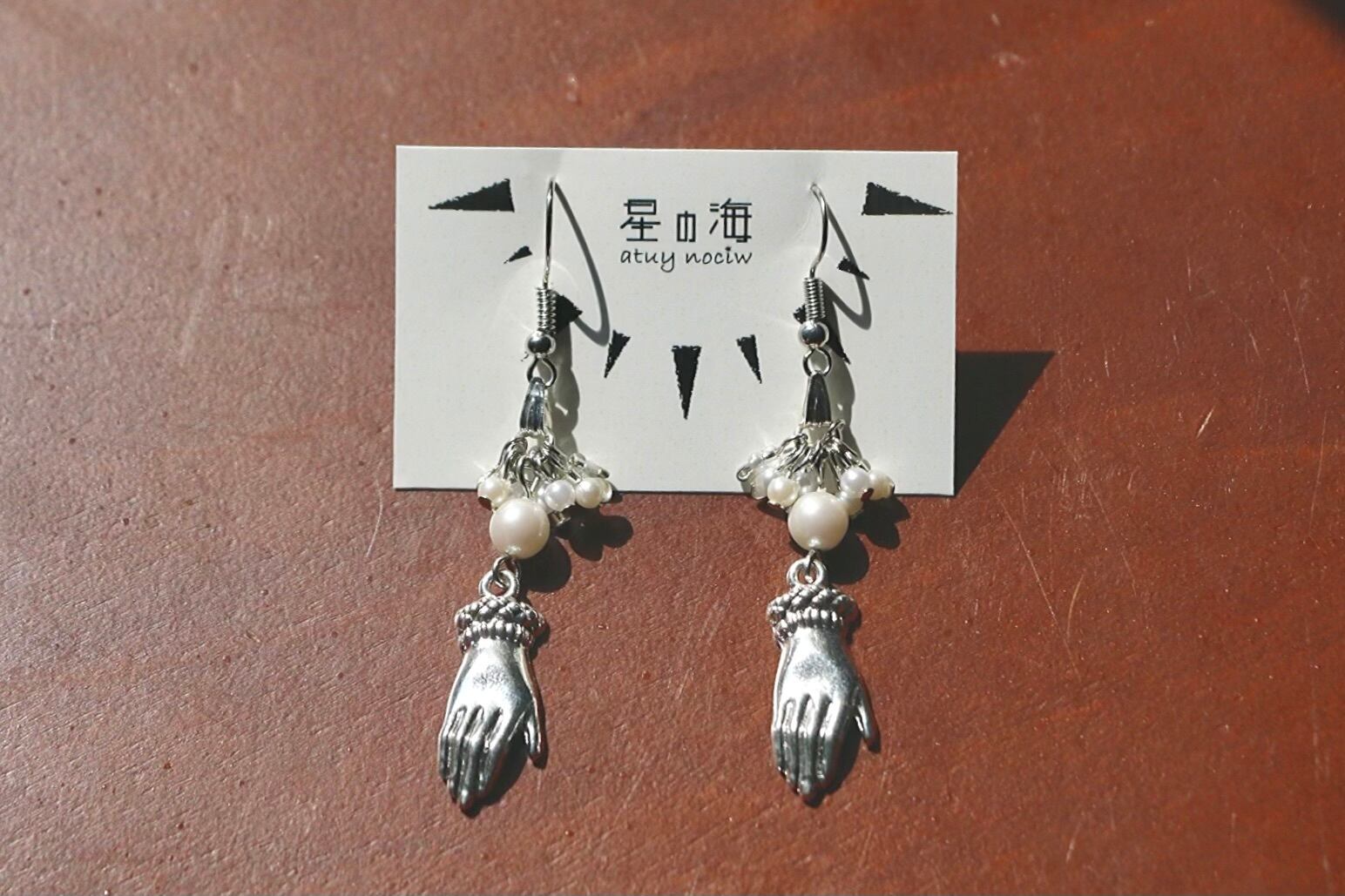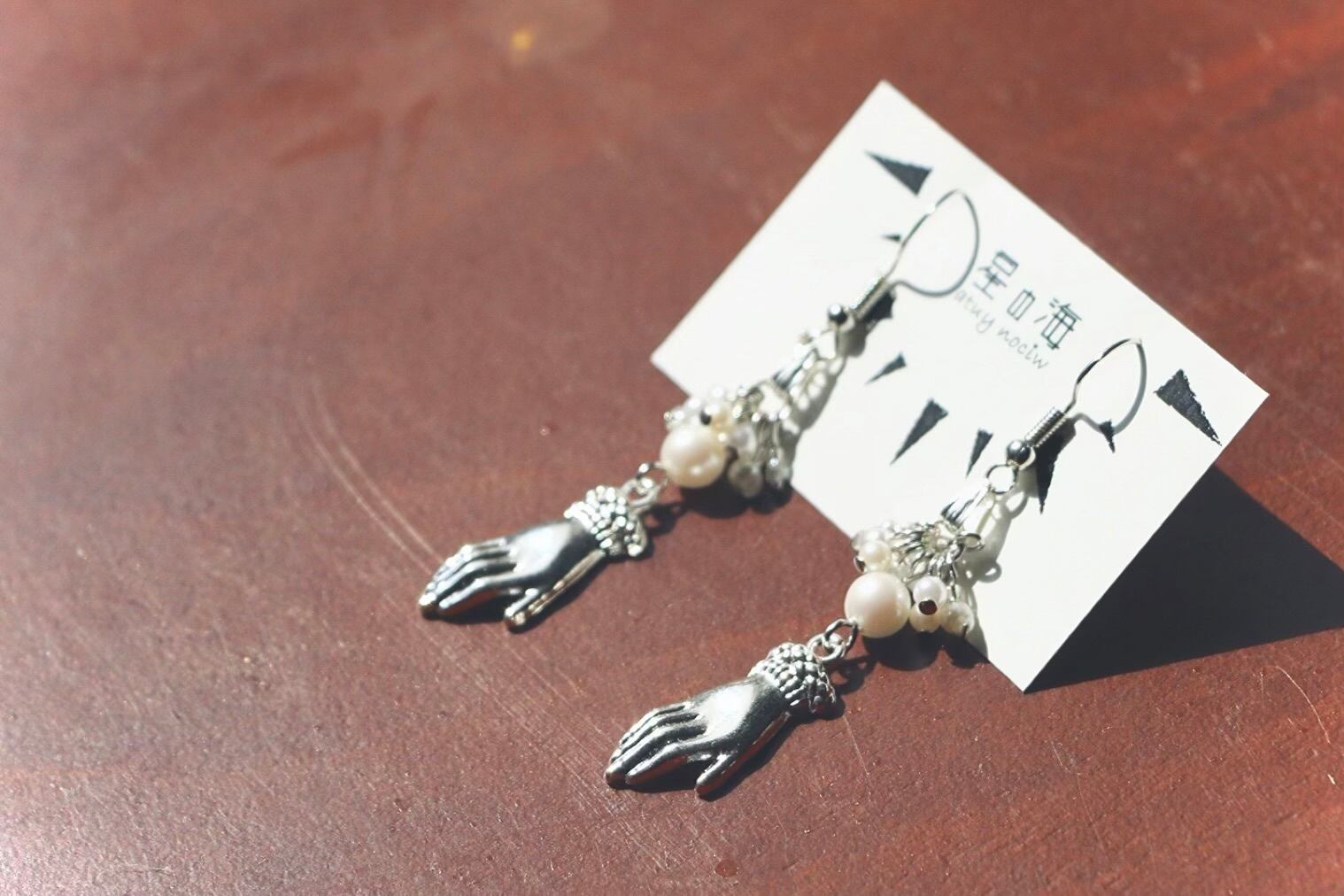 「救い」 ピアス イヤリング 手 シルバー パール