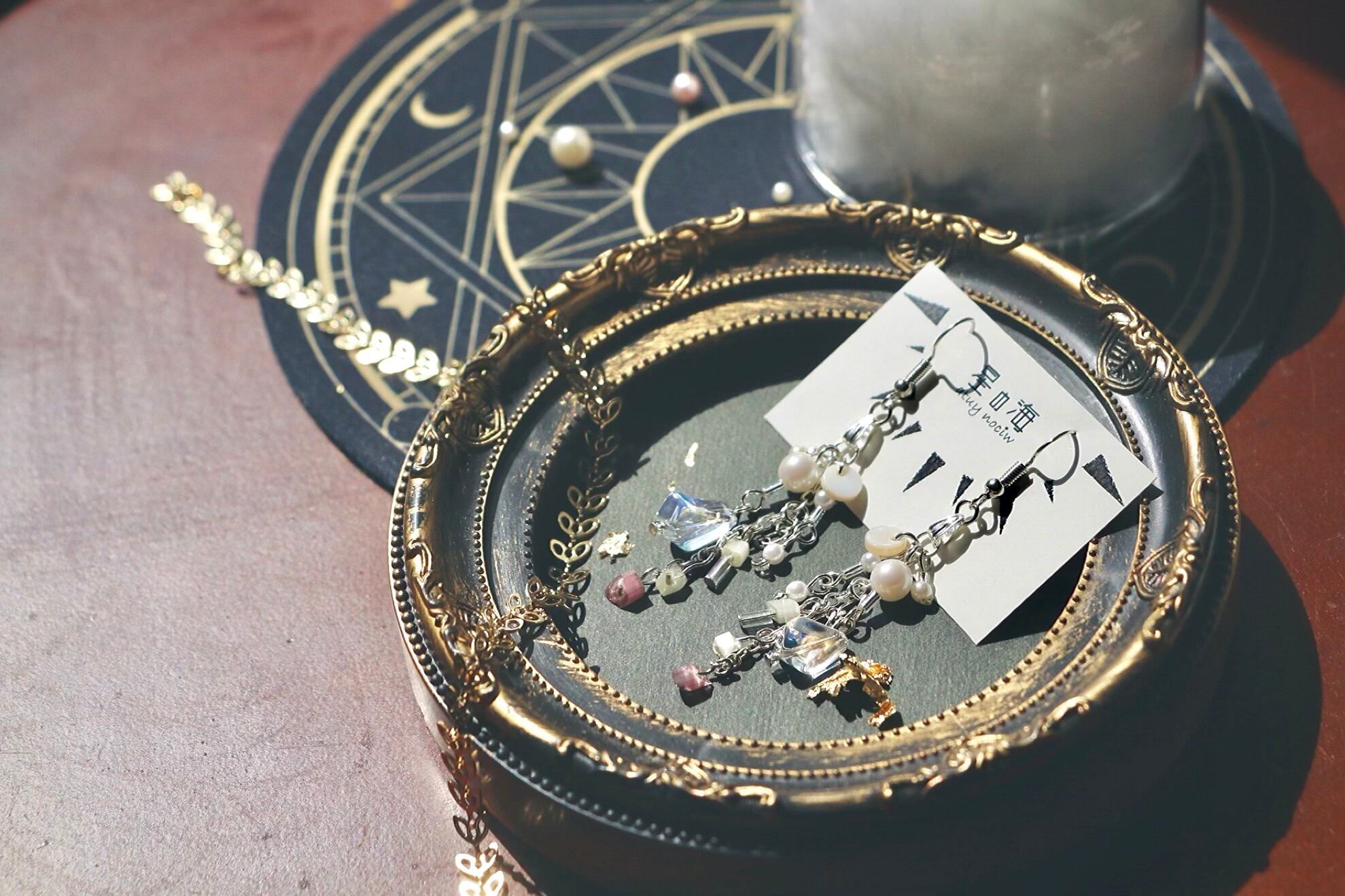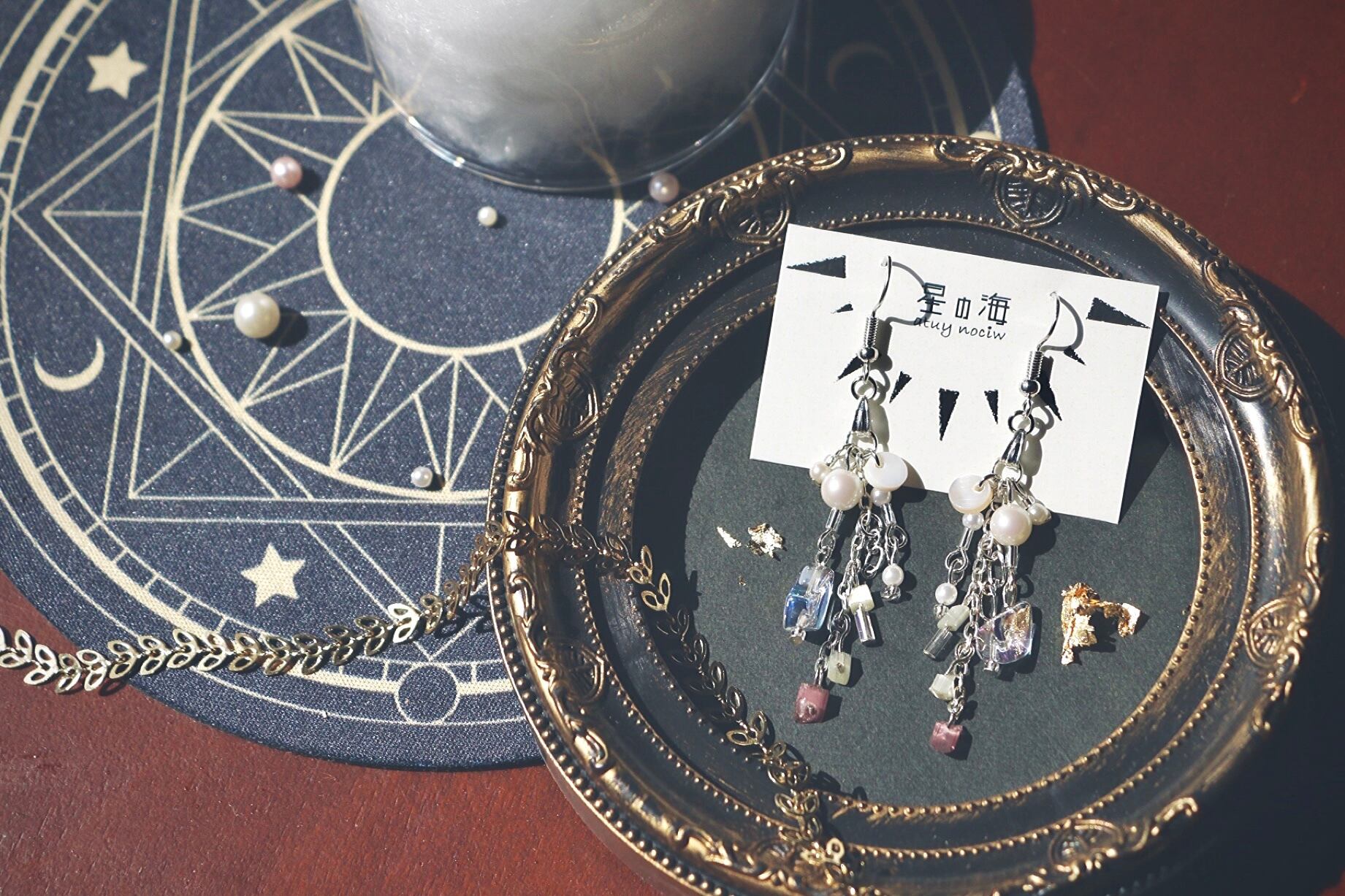ハンドメイド アクセサリー レジン キラキラ ピアス イヤリング 揺れる パール ジャラジャラ デザイン シルバー ブラックコーデ ビーズ