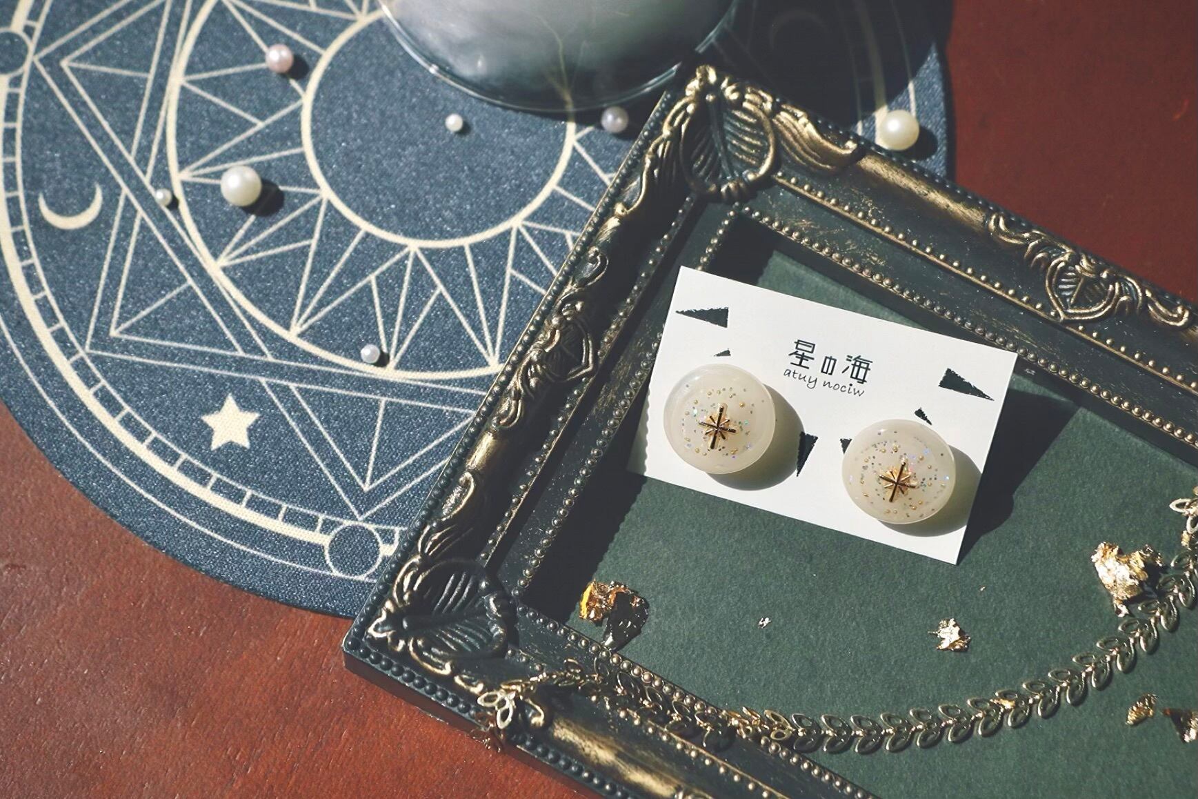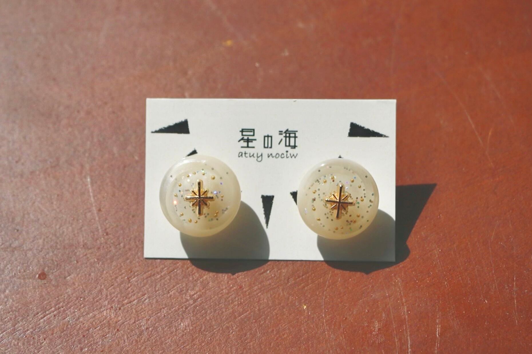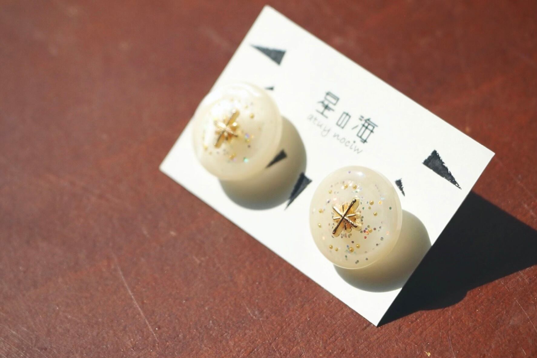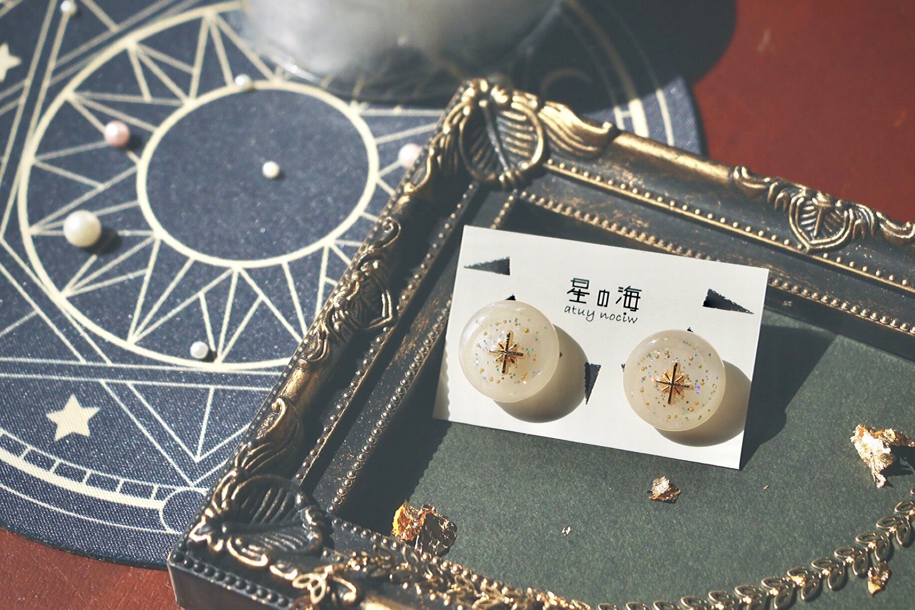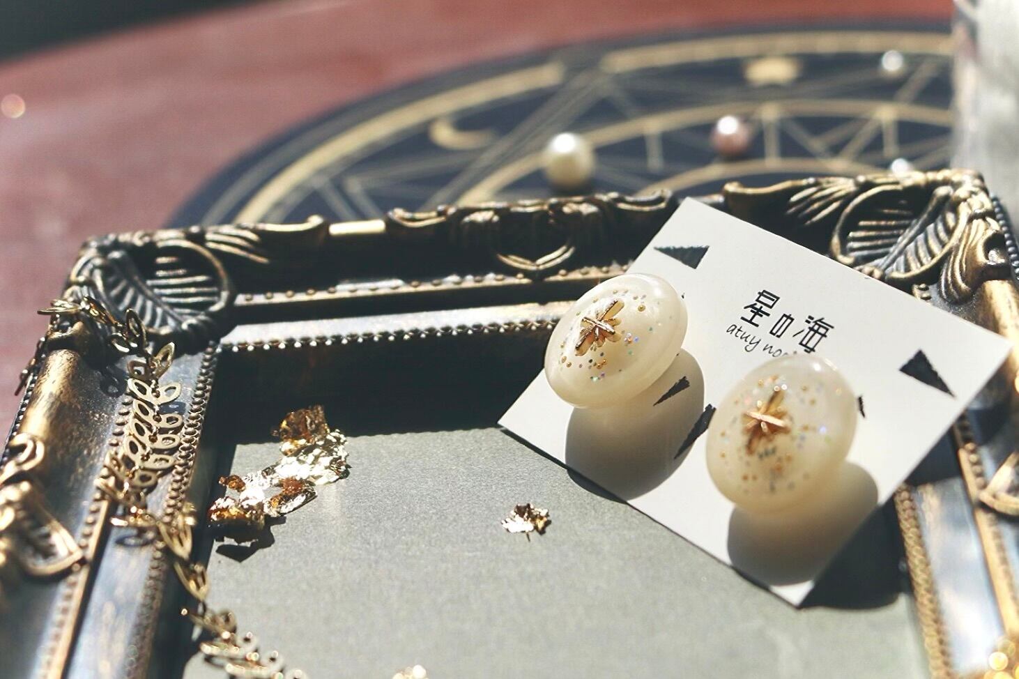 ハンドメイド アクセサリー レジン キラキラ ピアス イヤリング デザイン シルバー ブラックコーデ ゴールド 星 星座 ヴィンテージ ボタン ビンテージ