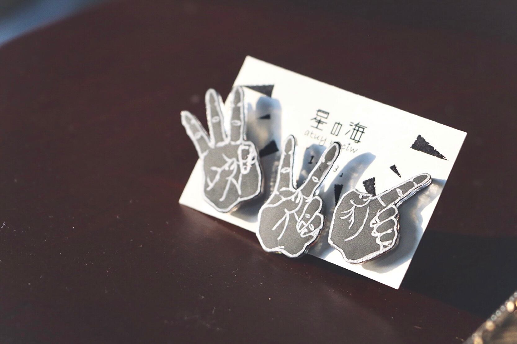 ご好評いただいていた手描きおててシリーズから、3点セットのピンブローチが登場!