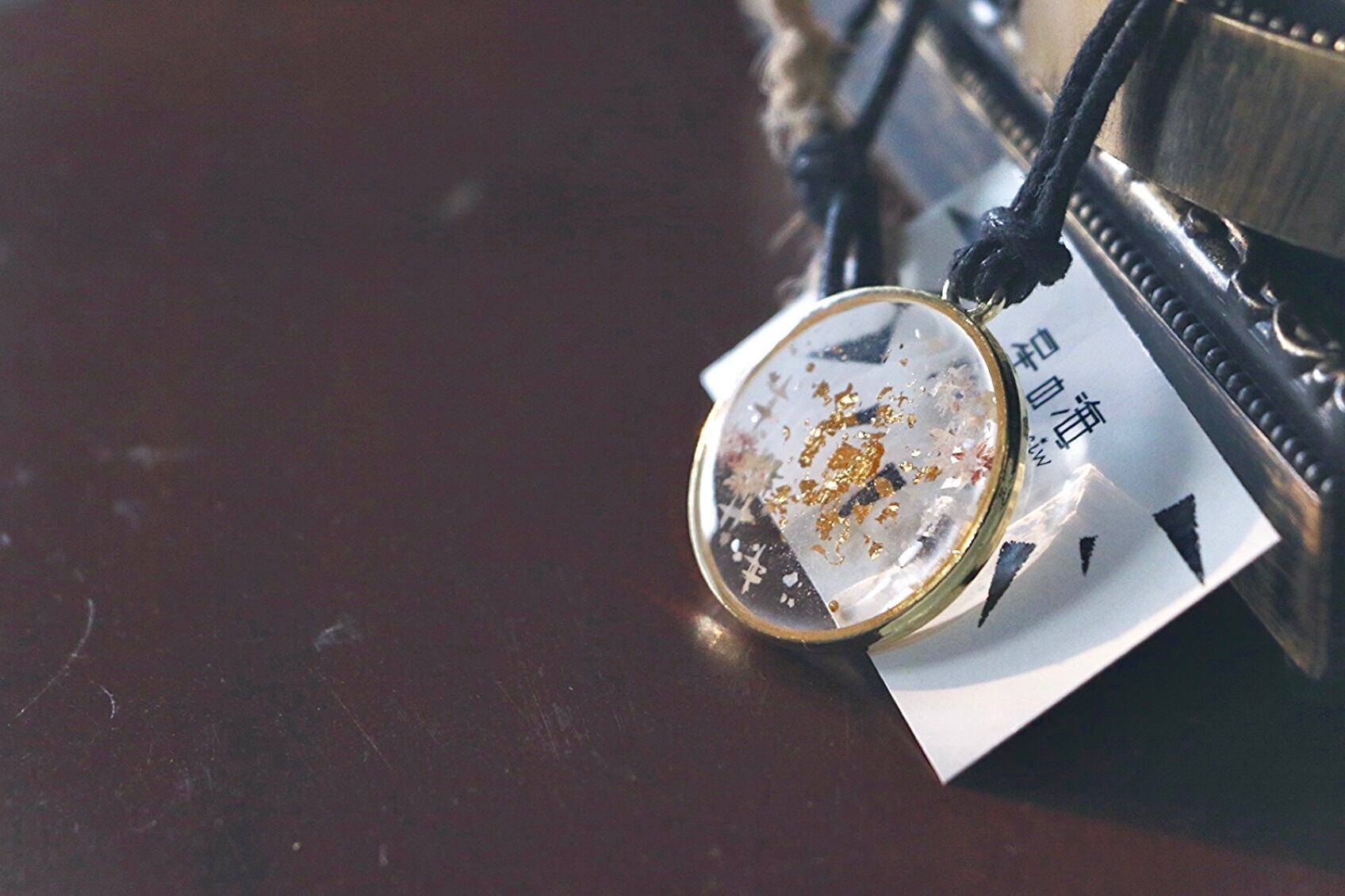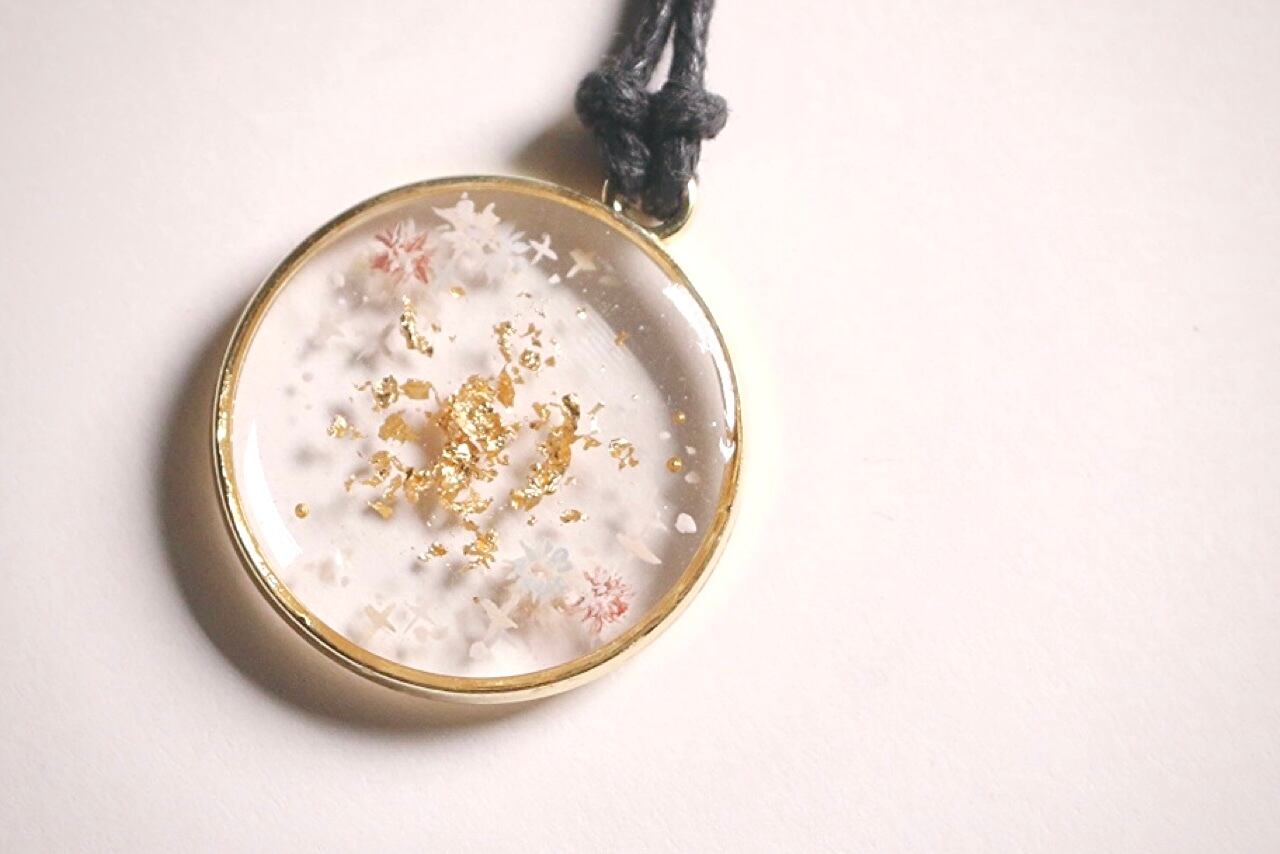 ハンドメイド レジン 手描き ペンダント ネックレス 透明 クリア 月 秋 ファッション 写真 ゴールド