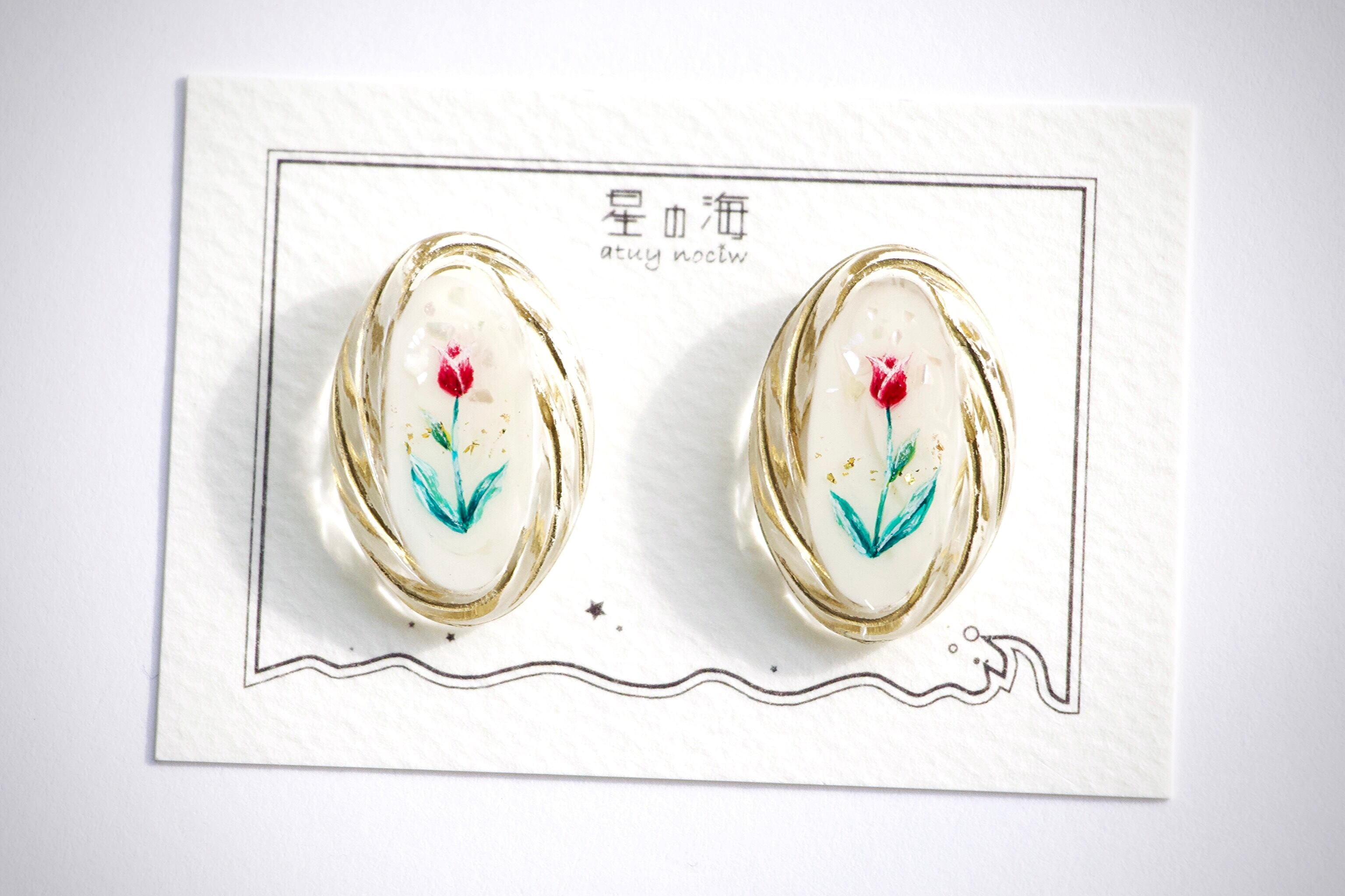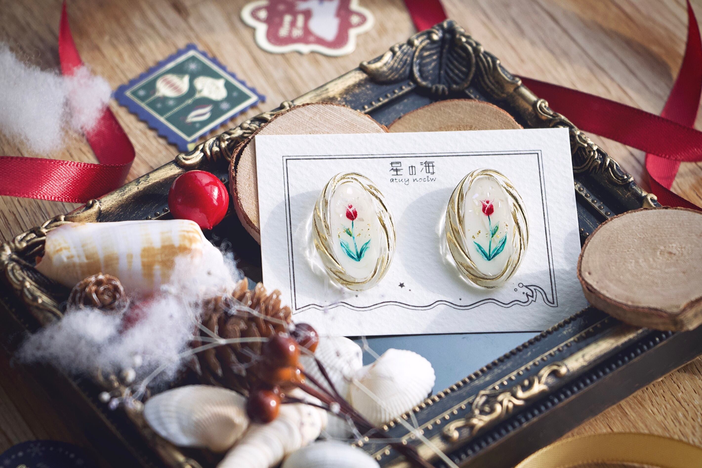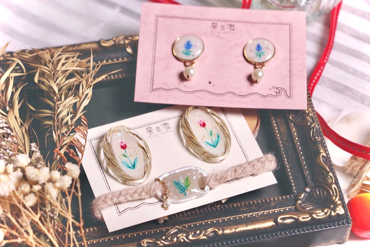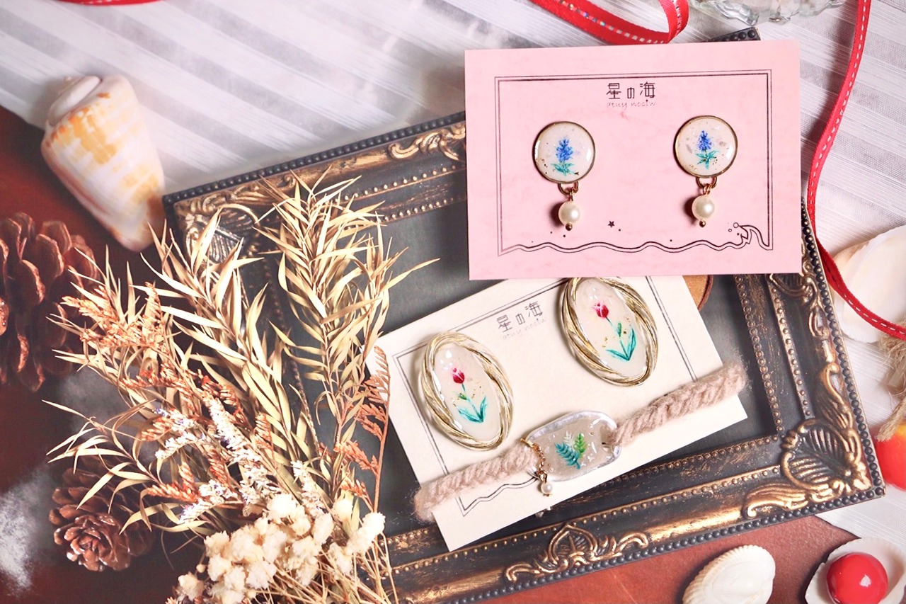 星の海といえば手描きデザイン!陶器のお皿のようなビンテージ風作品から、チューリップを描いたアクセサリーが入荷