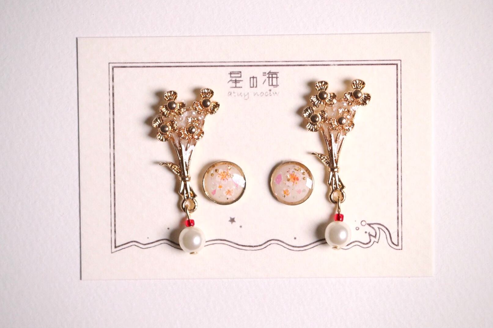 ハンドメイド アクセサリー ピアス イヤリング 梅 お花 手描き 成人式 卒業式 和風 福袋 和洋折衷 キラキラ ピンク 赤 ゴールド ミニ 小ぶり かわいい きれい
