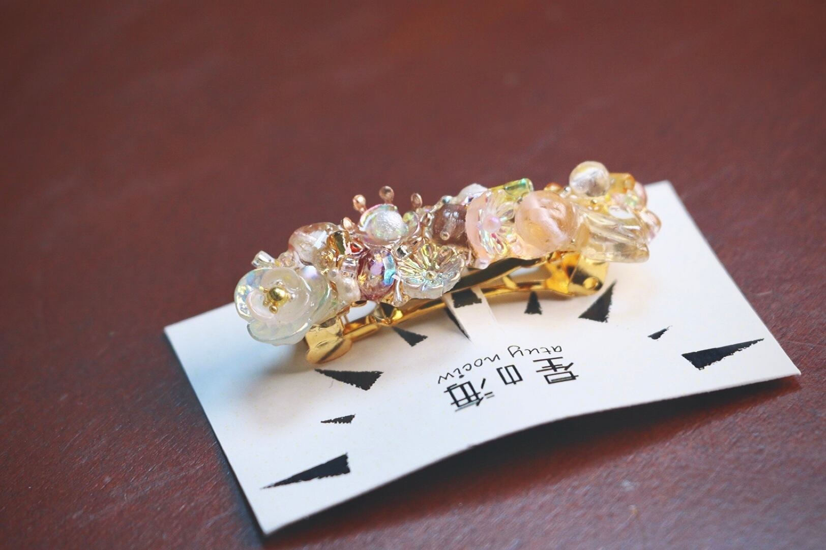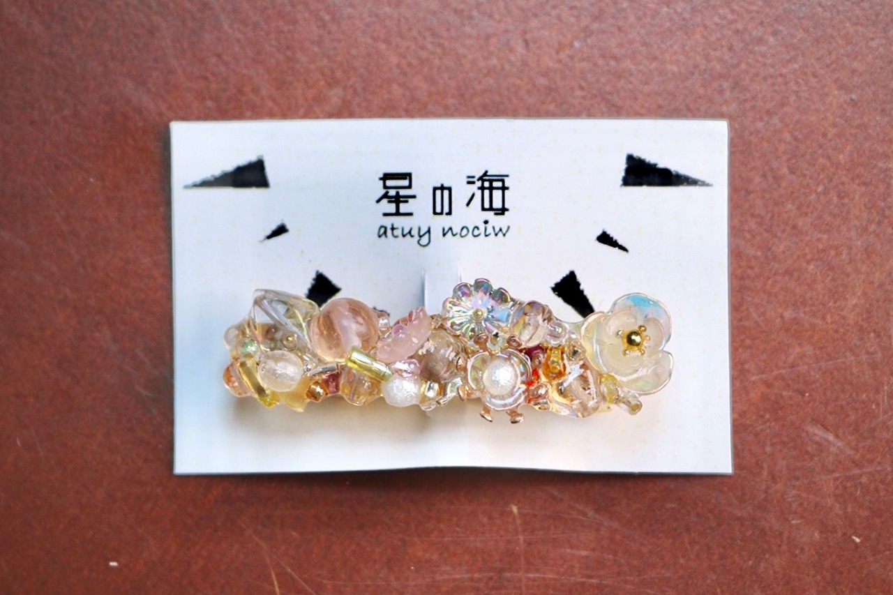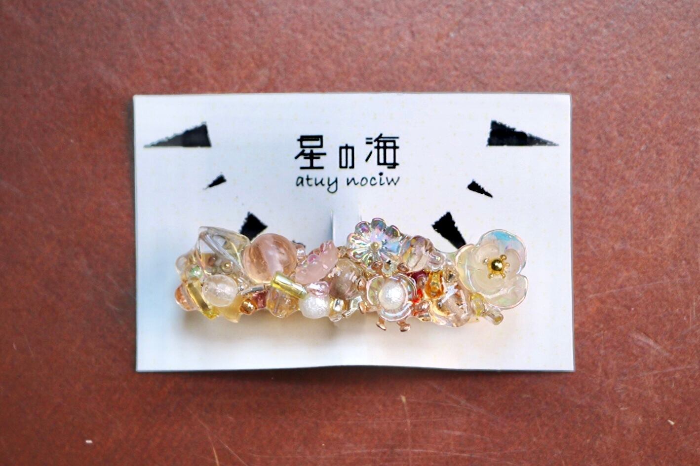 ハンドメイド バレッタ ヘア アレンジ アクセサリー 和風 着物 成人式 抹茶 色味 パステルカラー オーロラ カラー お花 キラキラ ミニ 春 かわいい 綺麗